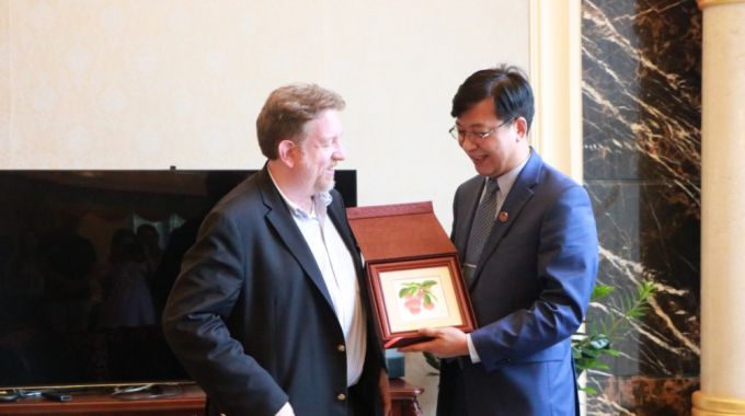 5月29日,美国菲尔莱狄更斯大学副校长Jason Scorza教授等三人来访yabo鸭脖,yabo鸭脖校长助理黄南松教授,商学院院长何兴强教授,国际合作与交流部副部长代燕飞老师等多位老师在专家楼接待来宾。 yabo鸭脖黄南松教授向远道而来的美国菲尔莱狄更斯大学代表表示热烈的欢迎,...