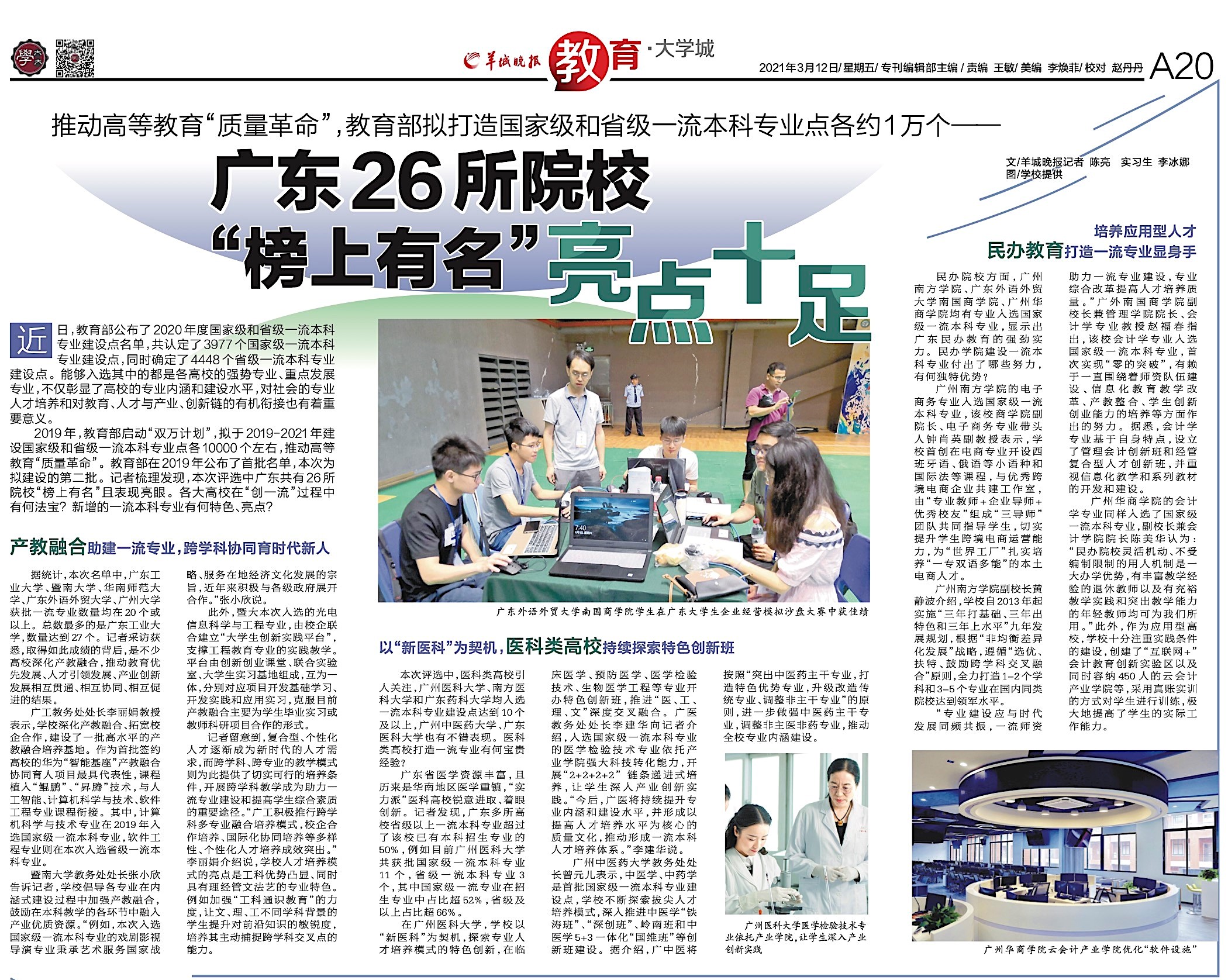 编者按: 3月12日,《羊城晚报》刊发长篇报道,介绍广东省高等院校入选国家级和省级一流本科专业建设点情况,yabo鸭脖副校长黄静波教授、商学院副院长、电子商务专业带头人钟肖英副教授接受了记者采访,介绍yabo鸭脖连续两年入选国家级一流本科专业建设点名单,...