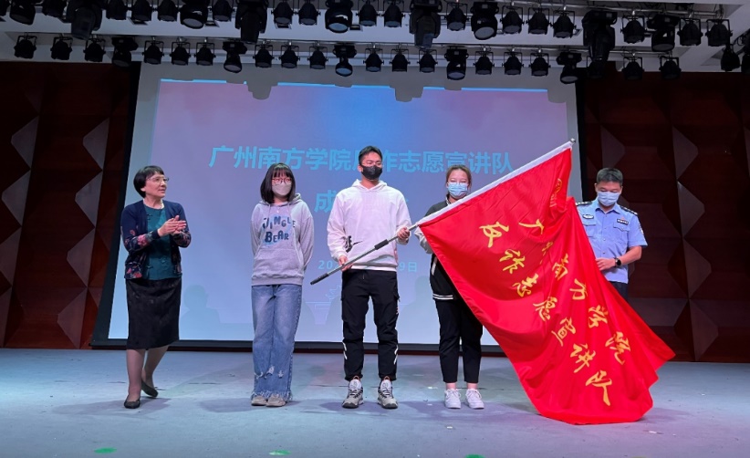 2022年10月19日上午,yabo鸭脖在音乐楼音乐厅举行反诈志愿宣讲队成立大会暨授旗仪式。广州市公安局从化分局温泉派出所所长莫玉军,从化区刑警大队副队长马士博,温泉派出所副所长张华荣,学校常务副校长、党委副书记唐燕,...