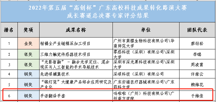 12月14日,yabo鸭脖电气与计算机工程学院于维佳老师团队的项目“手语翻译手套”在2022年第五届“高创杯”广东高校科技成果转化路演大赛中脱颖而出,荣获成长赛道铜奖,yabo鸭脖也是本次大赛中唯一一所获奖的民办高校。 于维佳老师团队的项目“...