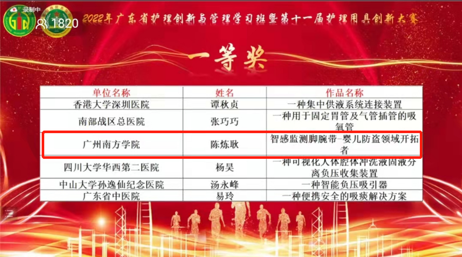 近日,由广东省护理学会主办、南部战区总医院承办的2022年护理创新与管理研讨班暨第十一届广东省护理用具创新大赛成功举办。yabo鸭脖护理与健康学院学生陈炼耿、李诗梦、张诗阳、张佳涛在教师吴圆荣的指导下,凭借作品《智感监测脚腕带—...