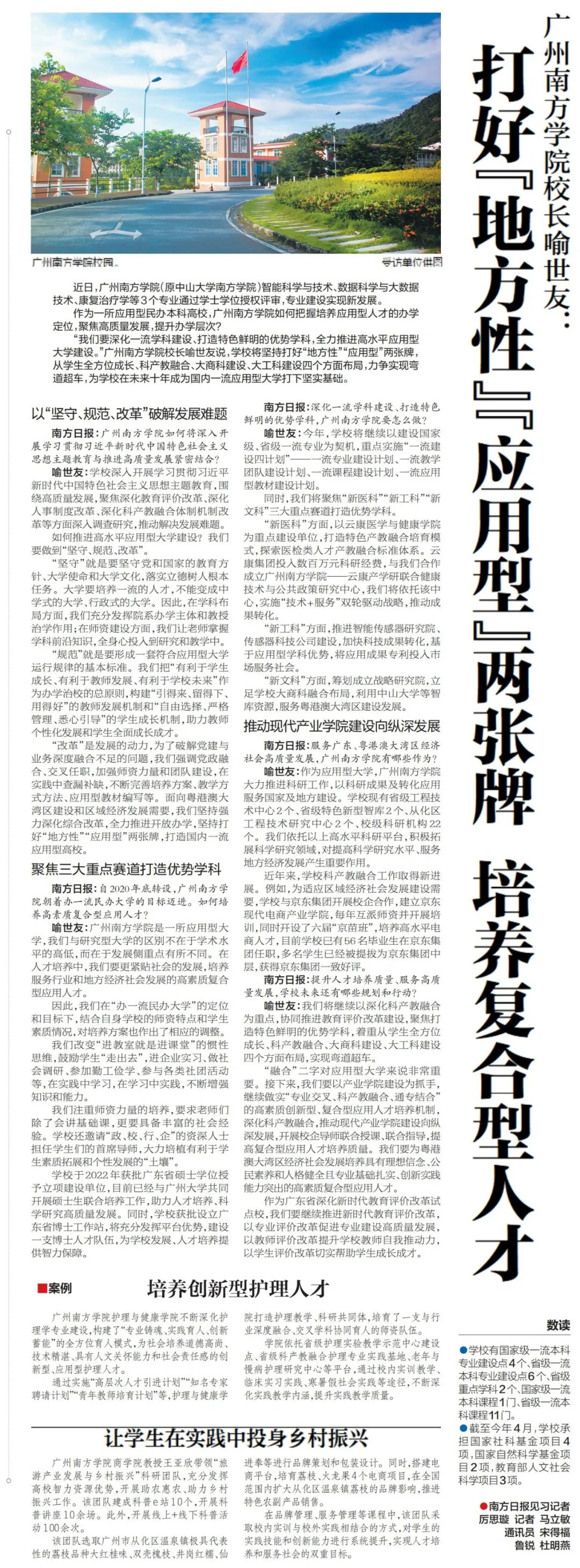 编者按: 近日,yabo鸭脖官网校长喻世友教授接受《南方日报》记者专访,讲述yabo鸭脖如何把握培养应用型人才的办学定位,聚焦高质量发展,提升办学层次。以下全文转发。 原文链接: https://epaper.southcn.com/nfdaily/...