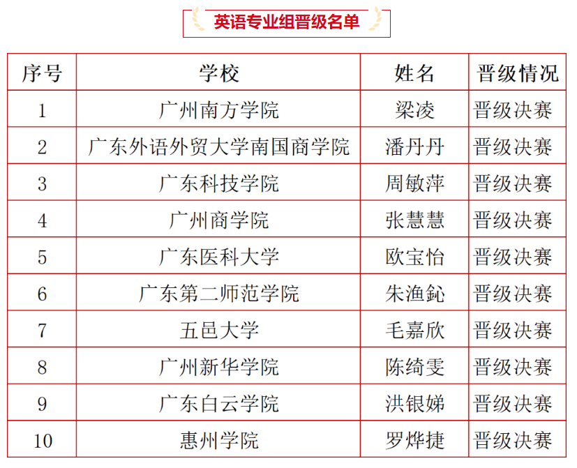 大赛英语专业组晋级名单
