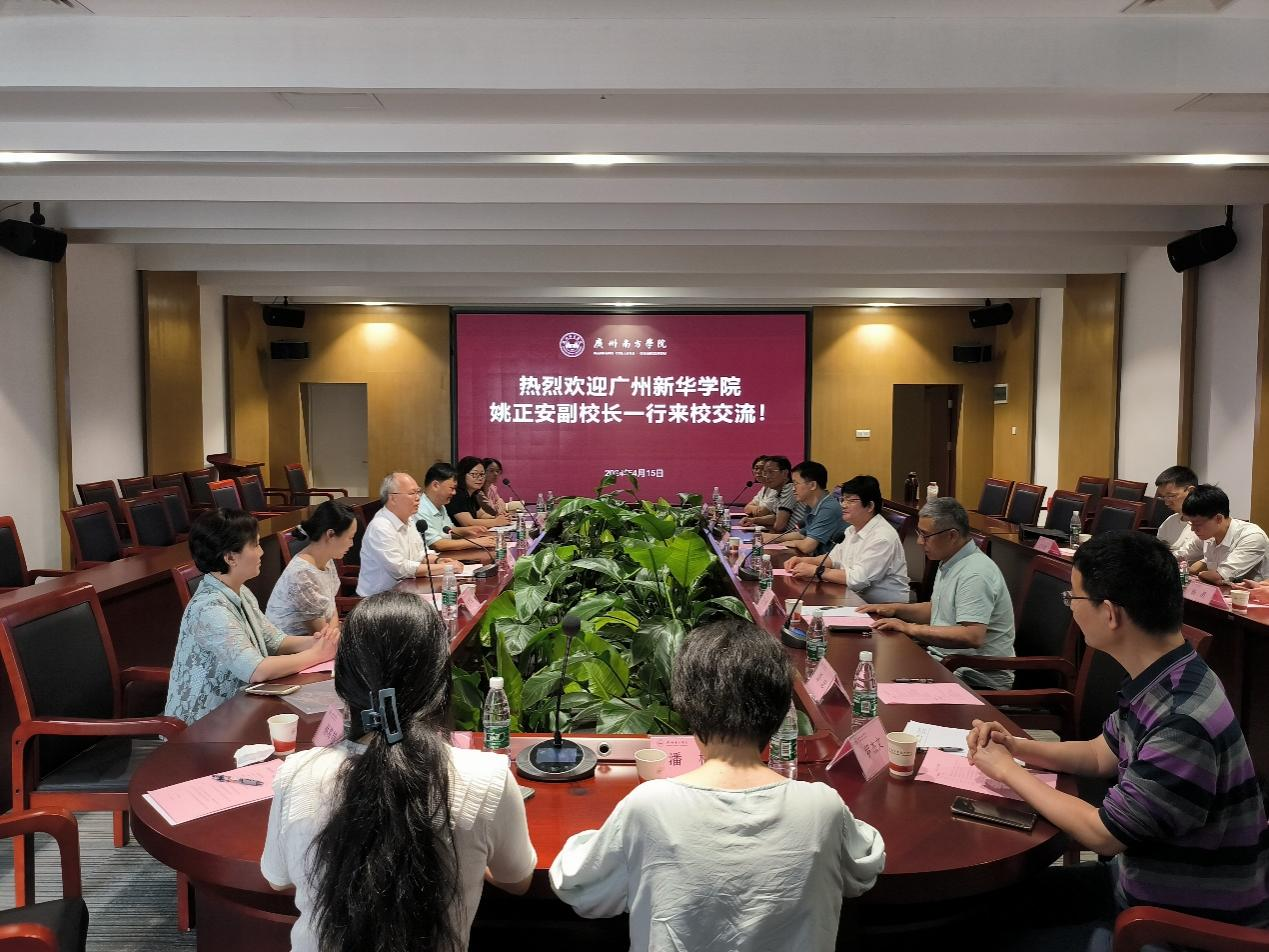 4月15日下午,广州新华学院姚正安副校长一行来yabo鸭脖调研, 座谈会在综合楼第一会议室举行,双方围绕科研、实验室、图书馆建设等方面进行了经验交流。会议由yabo鸭脖副校长夏亮辉主持,科研处、教务处、图书馆、实验教学管理中心等职能部门相关人员出席会议。