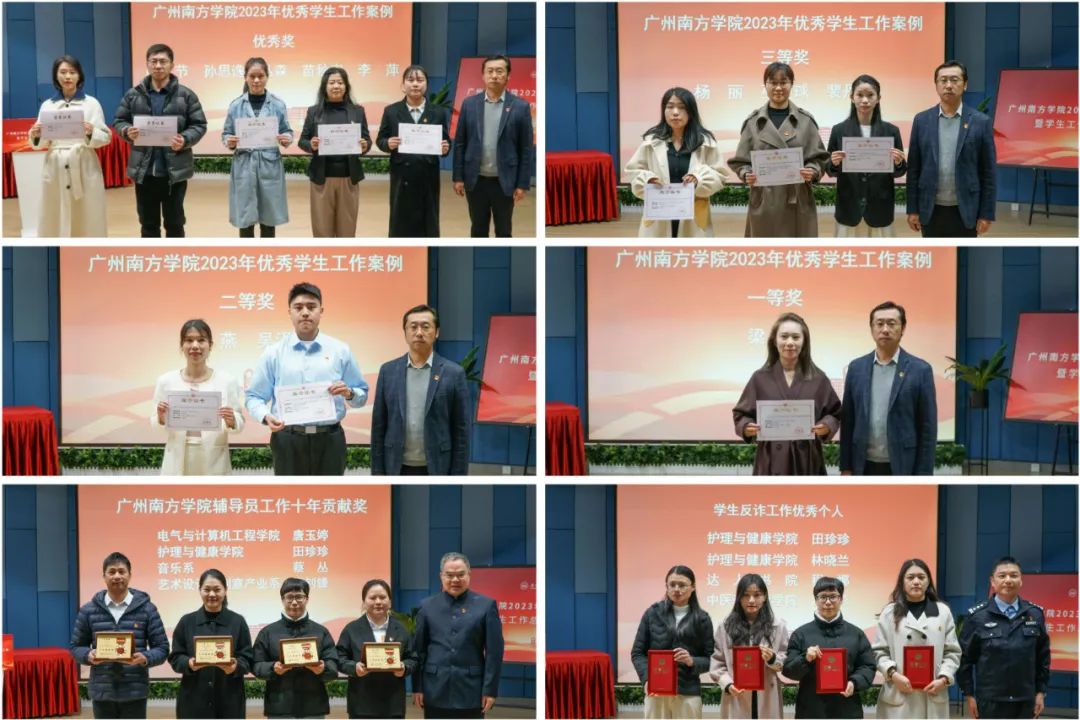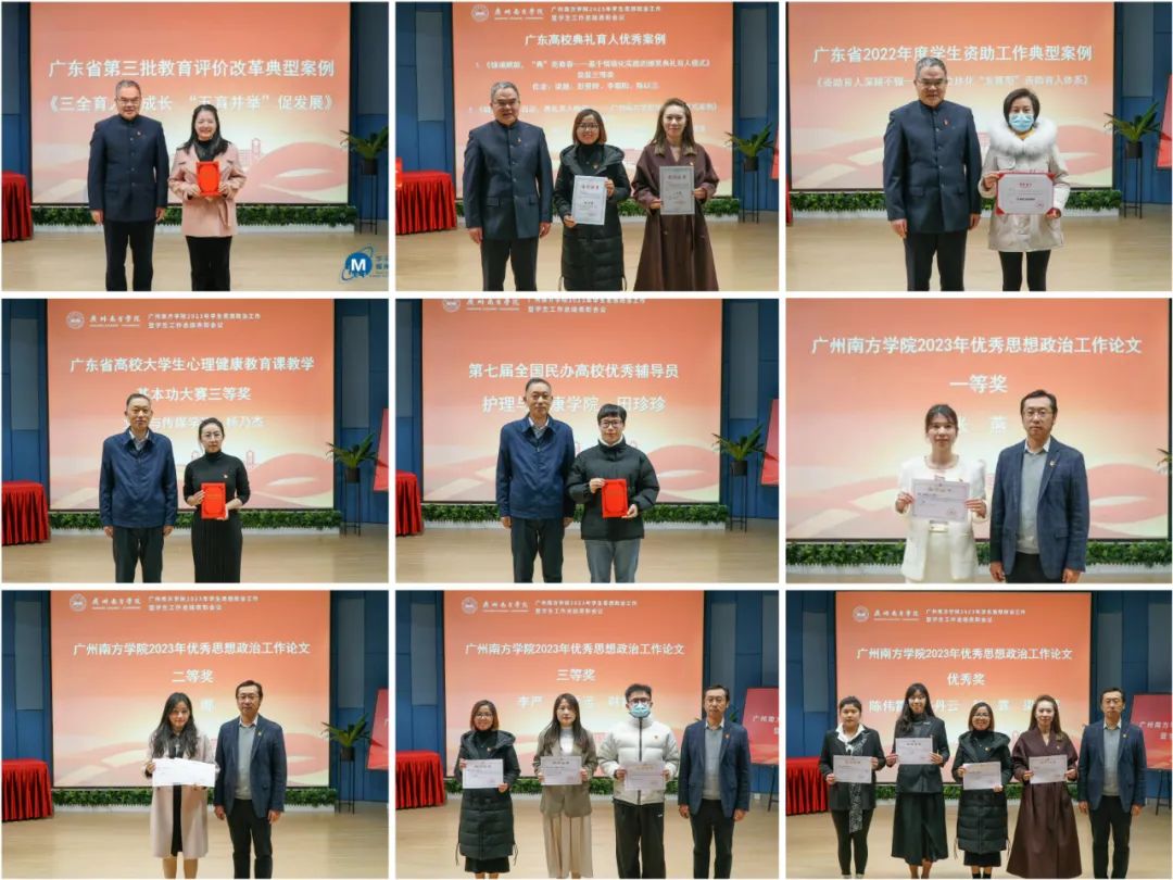 会上,为yabo鸭脖学工队伍获得广东省第三批教育评价改革典型案例、广东高校典礼育人优秀案例、广东省学生资助工作典型案例,广东省高校大学生心理健康教育课教学基本功大赛,第七届全国民办高校优秀辅导员,学校2023年思想政治工作论文和工作案例、防诈骗工作优秀个人以及辅导员工作十年奉献奖进行了表彰。