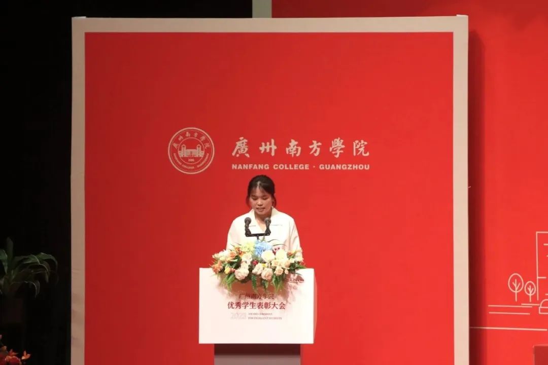 2021级行政管理专业的赖瑞琦作为国家奖学金代表在会上分享了自己的成长故事。在学习方面,她建议要保持专注和热情,合理规划时间。可以多参加竞赛,学会在有限时间内完成任务,提前了解比赛。在进行社会实践时,和团队成员进行有效沟通,明确目标和计划。她表示不论面对怎样的困难,都要勇敢面对,不断奋斗,为建设祖国更美好的未来贡献力量。