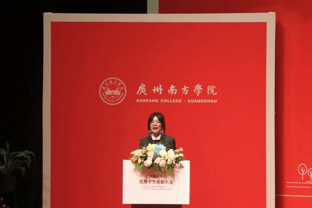 2022级达人书院会计班班长许湘娱同学作为优良学风班的班委代表发言,分享获奖经验。她表示,一个优良学风班不仅要注重思想建设,保持思想先进,还要具备真才实学。未来,他们将带着这份荣誉,踏实勤奋,创造更美好的明天。
