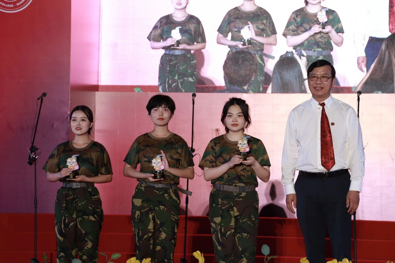 植秀聪副书记、副校长为获”创意奖“军训团颁奖(卢璇 摄)