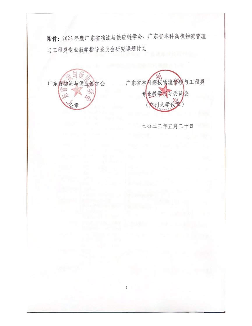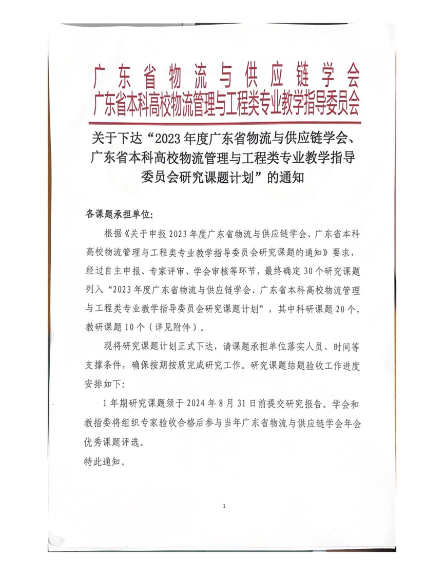 2023 年度广东省物流与供应链学会、广东省本科高校物流管理与工程类专业教学指导委员会研究课题计划通知