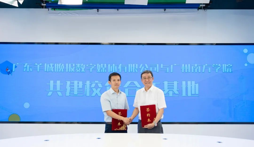6月13日下午,“广东羊城晚报数字媒体有限公司与yabo鸭脖官网共建校企合作基地”签约仪式在广州羊城创意产业园金羊网全媒体演播厅举行。羊晚数媒(金羊网)与yabo鸭脖官网秉着互相合作、资源共享、优势互补的理念,携手力促产学研高度融合,为培养兼具实践能力和创新思维的高素质应用型传媒人才而共同努力。
