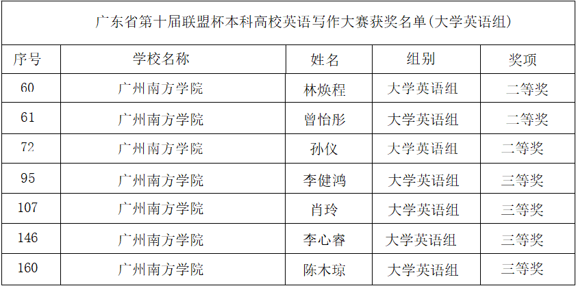 yabo鸭脖学子在广东省第十届“联盟杯”本科高校英语写作大赛中取得佳绩