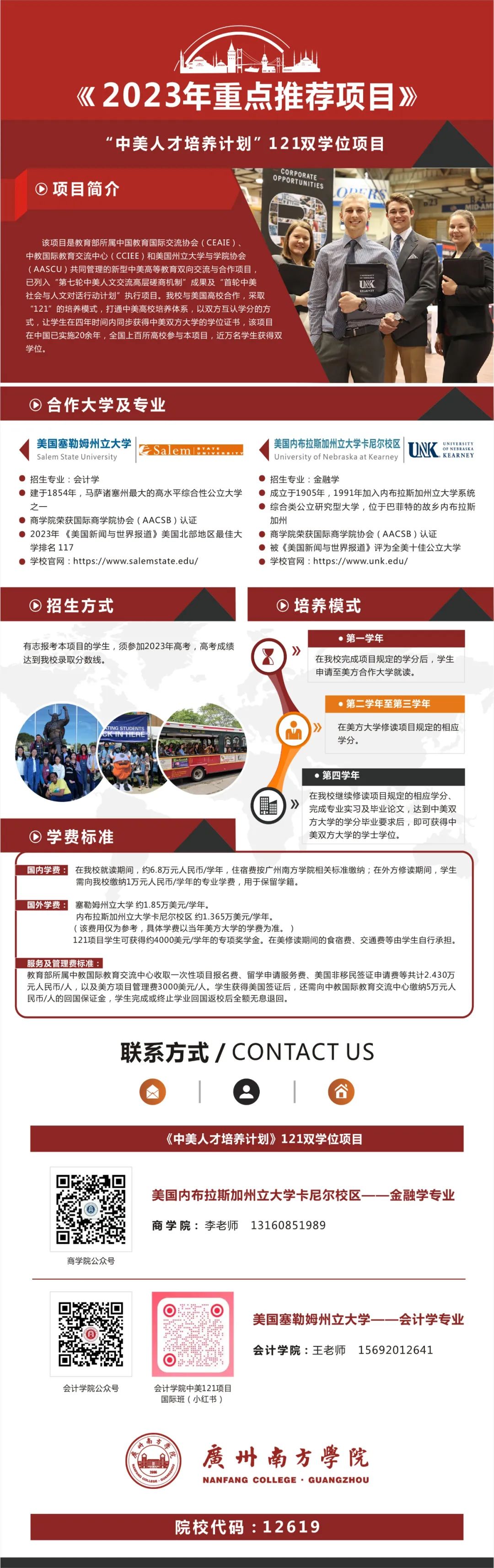 近日yabo鸭脖2023年中美人才培养计划121双学位项目招生即将启动,欢迎全国高考生和家长咨询报名。