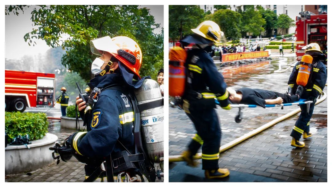此次演练由从化区消防救援大队、学校保卫处、学生处、总务处、医务室、护理与健康学院及物业公司共同组织。