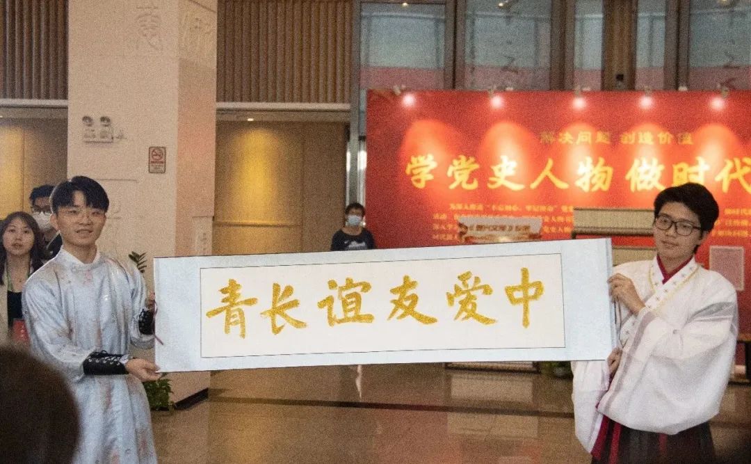 师生书法展示祝福中爱友谊长青