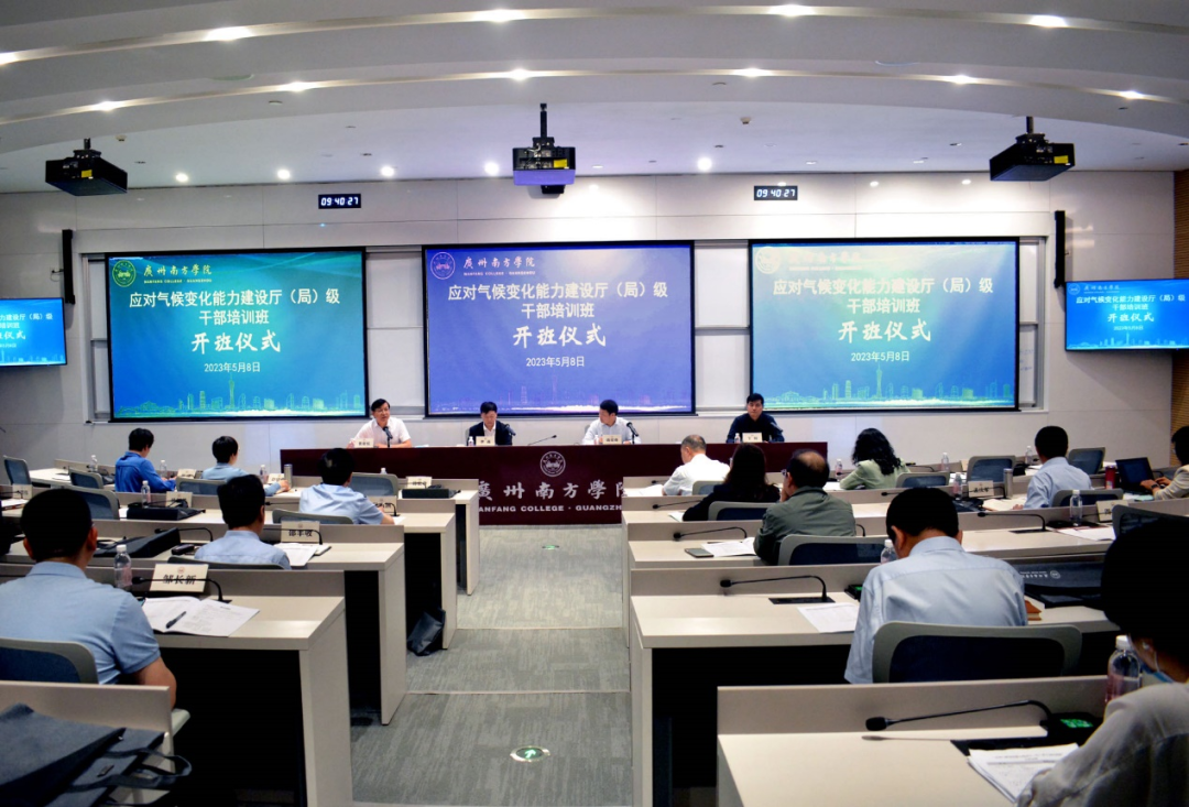 5月8日上午,生态环境部应对气候变化司司长李高、广东省生态环境厅副厅长蒋宏奇、yabo鸭脖官网副校长黄南松出席了开班仪式并致辞。生态环境部应对气候变化司综合处处长丁辉主持了开班仪式。