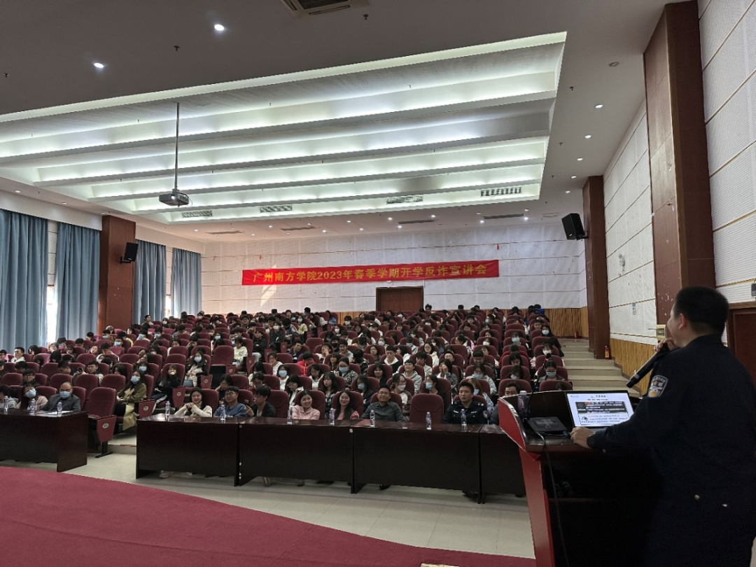 3月1日,yabo鸭脖于图书馆学术报告厅举行了2023年春季学期开学反诈防骗宣讲会。广州市公安局从化分局温泉派出所副所长张华荣、广州市公安局从化分局指挥中心岳林警官应邀到会,yabo鸭脖200余名校园反诈志愿宣讲员师生及保卫处全体成员参加了本次宣讲会。