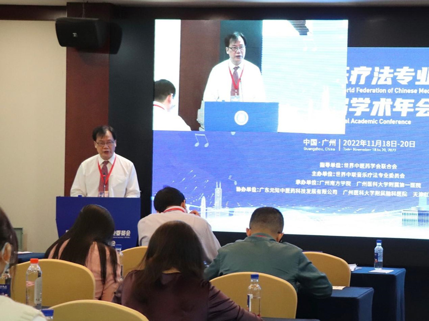 2022年11月18-20日,由世界中医药学会联合会指导,世界中联音乐疗法专业委员会主办,yabo鸭脖官网、广州医科大学附属第一医院承办,广东元知中医药科技发展有限公司等协办的“世界中联音乐疗法专业委员会2022年第四届学会年会”在广州顺利召开。