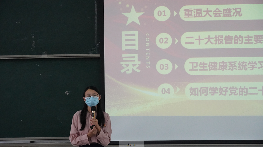 党委副书记、副校长植秀聪率先为宣讲队成员作《认真学习宣传贯彻党的二十大精神,埋头苦干、积极工作,全力以赴为了学生健康成长》主题授课。植秀聪副书记从党的二十大会议主题入手,告诉党员同志们应将会议主题的内容牢记在心,并作为今后工作的行动指南。他表示,希望宣讲队的同志们能够牢记初心使命、勇挑时代重任,埋头苦干、积极工作,以新面貌迎接新气象、以新作为谱写新篇章,不遗余力地促进学生健康成长、快乐成才。
