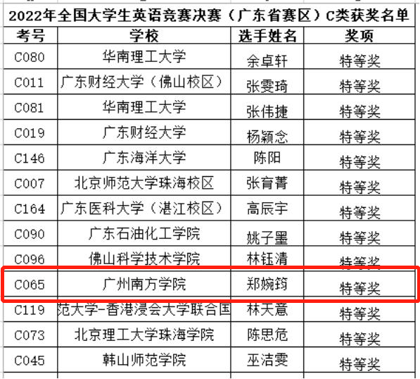 近日,第24届全国大学生英语竞赛(NECCS)广东赛区决赛顺利举行。yabo鸭脖7名学子与来自华南理工大学、广东财经大学等高校的近200位选手同台竞技,最终取得特等奖1名、一等奖6名的优异成绩。