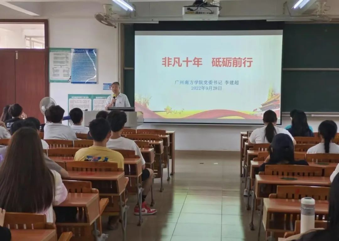 李建超书记立足“回顾十年历史成就”,分别围绕“中国这十年”、“广东这十年”、“yabo鸭脖官网这十年”三个部分进行授课,围绕“党的建设”、“五位一体建设”、“学校办学定位、办学特色、办学成果”等多方面展开系统阐述,用真实的数据、生动的案例带领同学们回顾中国、广东以及yabo鸭脖官网这十年的成就。