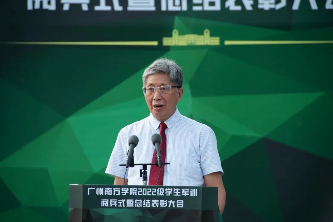 喻世友校长在讲话中代表学校对辛勤付出的军训团全体教官、成长导师、辅导员、学生班主任及后勤保障人员表示衷心感谢,同时也向圆满完成军训任务的2022级新生致以热烈的祝贺。喻世友校长表示,同学们勇敢面对各种挑战,展现了昂扬的精神风貌和青春活力,让我们对南方学院的未来有了更加充足的信心,让我们对南方学院争创一流应用型大学有了更坚定的企盼。