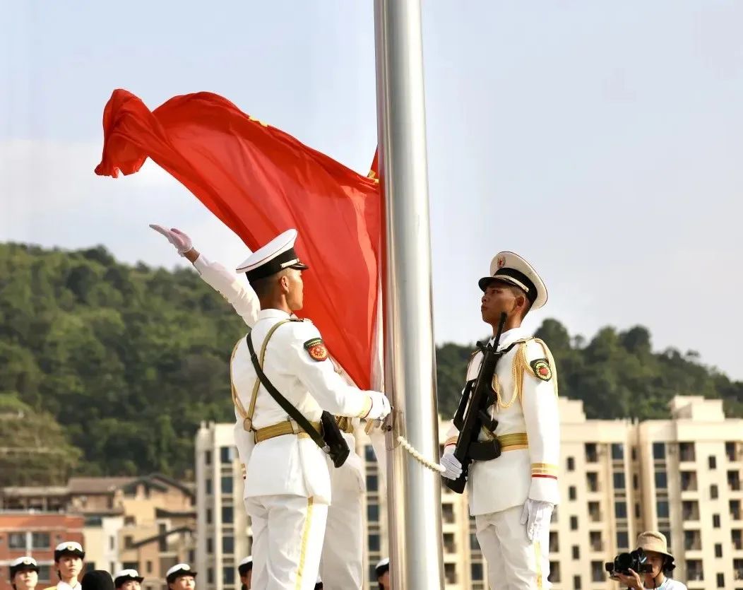 在庄严的国歌声中