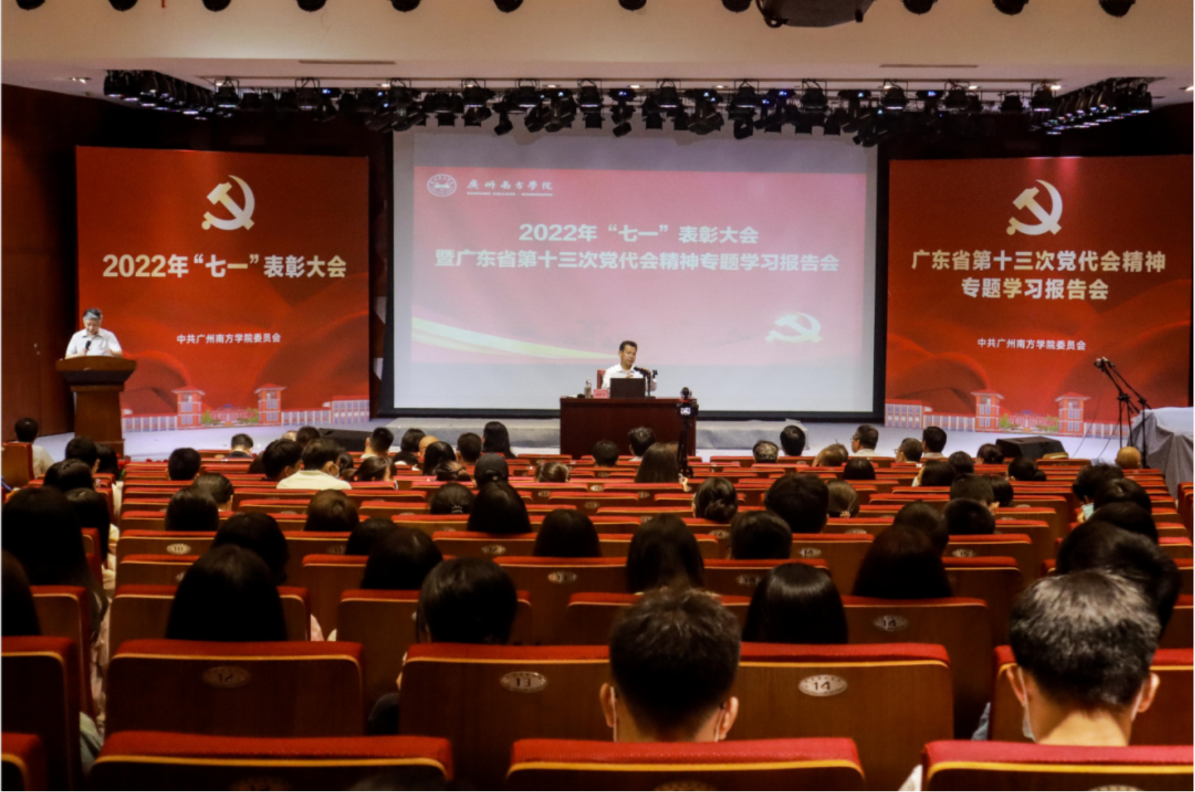 6月29日上午,yabo鸭脖在音乐厅隆重举行庆祝建党101周年“七一”表彰大会,并邀请到省第十三次党代会精神省委宣讲团成员、广东省社会科学院党组书记郭跃文作专题辅导报告。学校党政班子成员、校长助理、校党委理论学习中心组成员及教师党员代表、学生党员代表,受表彰的先进集体和先进个人代表,新党员代表共400余人参加了会议。会议由常务副校长、党委副书记唐燕同志主持。