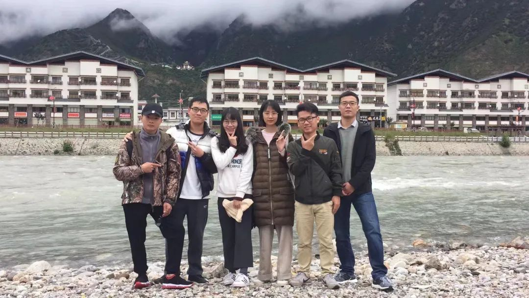 潘浩天与同行的毕业生在到达西藏林芝市工布江达县的合影(左二 潘浩天)图源/受访者