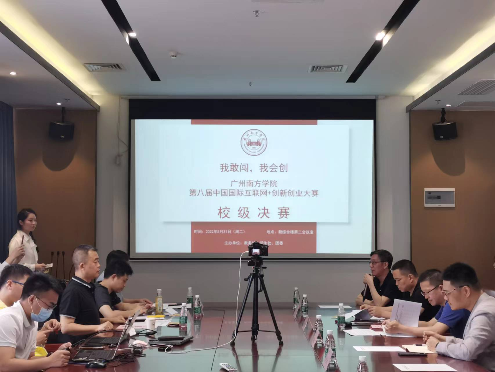 本次大赛由教务处、学生处、团委共同组织实施。经过校级初赛环节,共选出15个主赛道项目、6个红旅赛道项目进入决赛。决赛采用现场比赛、线上直播相结合的方式进行。广东财经大学教授、硕士生导师、发展规划处处长晏宗新教授,慧科集团合伙人、中国教育创新校企联盟秘书长、“互联网+”大赛资深专家曾慜,广州蓝山商裕投资管理有限公司总经理黄辉,君创(广州)投资控股有限公司总经理、广州零点股权投资管理有限公司合伙人顾蔚坤,广州中欣创业投资基金管理有限公司创始合伙人、投资总监,广东省创业投资协会副秘书长楼海光应邀担任大赛评委。