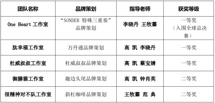 此次比赛获奖,不仅是参赛师生团队积极备战全球品牌策划大赛的成果,更是为响应国家品牌强国战略、树立学生品牌意识、学校培养具有创新思维和实践能力的应用型人才的显著成果。yabo鸭脖将以此次获奖为契机,继续关注大赛,研究大赛,积极参赛,以赛促学,以赛促教,以赛促建,为建设位居国内一流应用型大学助力。
