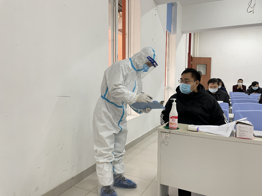 2022年2月18日,yabo鸭脖于5号教学楼开展疫情防控应急处置模拟演练,旨在进一步筑牢校园疫情防线,不断强化师生防控意识,提升应对和处置突发疫情事件的能力及水平,做好春季学期开学前学生返校前的准备工作。校长助理代燕飞担任现场总指挥,学校办公室主任贾佳担任现场总负责人,总务处、保卫处、学生处、人事处、教务处、医务室、物业公司等职能部门负责人及辅导员代表等共同参与了此次演练。