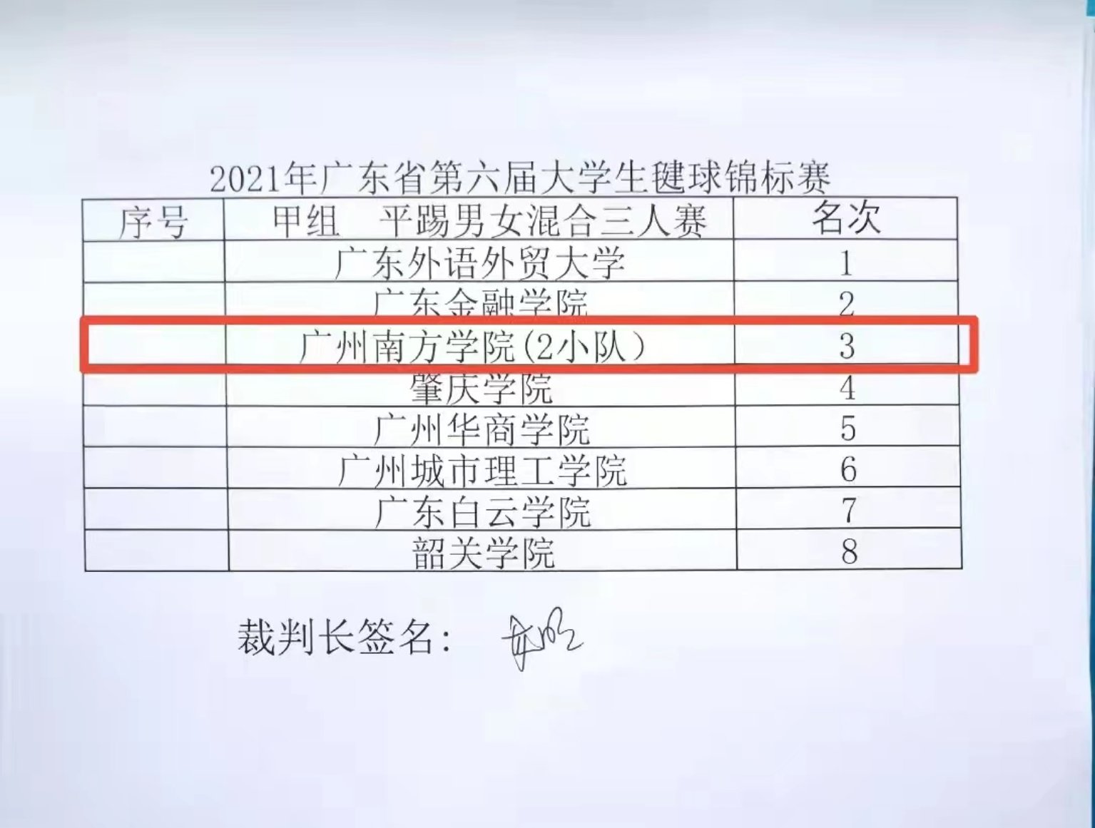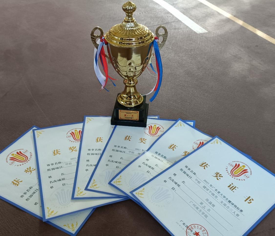 近日,由广东省教育厅和广东省学生体育艺术联合会联合举办的2021年广东省大学生毽球锦标赛在广州应用科技学院(肇庆校区)体育场成功举办。来自全省23所高校的300多名运动员参加了本届广东省高校最高水平的毽球比赛。yabo鸭脖毽球队13名球员在体育教学中心主任何江海、教师秦晓金和钱国雄教练带领下奔赴赛场。经过三天两夜的激烈奋战,斩获甲组平踢男、女混合三人赛的季军以及团队总分第八名的佳绩。在此,特别感谢何主任对毽球队的大力支持,感谢钱国雄教练对yabo鸭脖毽球队的厚爱。