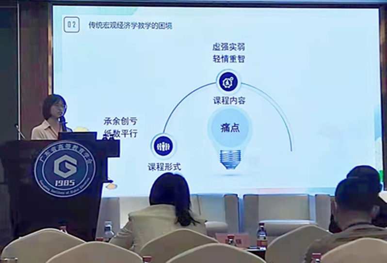 在高校教育教学创新分论坛上,首届全国高校教师教学创新大赛广东分赛中级以下组特等奖获得者、国赛二等奖获得者的商学院周瑛老师作为主讲嘉宾之一,围绕“‘三破三立’创新教学模式——以‘宏观经济学’课程为例”这一主题进行了专题发言,同与会老师们分享经验。在接下来的圆桌讨论中,六位主讲嘉宾围绕着高校教师教学创新工作进行了深入探讨和交流。