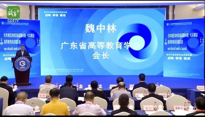广东省高等教育学会会长魏中林教授出席了会议并作主旨报告。魏会长指出,当今世界正经历百年未有之大变局,实现中华民族伟大复兴走上了不可逆转的历史进程。广东承载着党和国家的重托与厚望,省委、省政府推动全省构建“一核一带一区”区域发展格局,这对广东建设高质量高等教育体系既是重大机遇,又是巨大挑战。他认为,建设高质量高等教育体系,意味着要追求更高水平、更加多样、更加公平、更加开放的高等教育。在发言中,魏会长围绕建设高质量高等教育体系的基本背景、基本内涵、基本策略等三个方面进行了深入阐述。