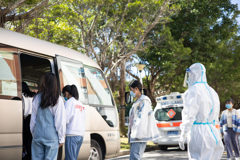 此次演练旨在提高学校师生疫情防控和遇突发状况的应急处置能力。演练地点在第五教学楼104课室,采取情景模拟与现场演练相结合的方式,从接到从化疫情防控专班电话告知yabo鸭脖有一例疑似新冠疫情病例展开。演练中,学校办公室接到信息后,第一时间向学校疫情防控领导小组组长报告,并启动应急处置预案。按应急处置流程,疫情防控工作指挥部成员来到疑似病例所在教室,进行信息初排,派出志愿者前往该病例隔壁宿舍,引导相关人员接受核酸检测。同时,医务人员将疑似病例带往隔离间,开展流行病学调查并作核酸检测,后登上救护车转运隔离。教室内,所有师生接受流行病学调查,并分组前往核酸检测点进行核酸检测,后登上中巴车前往隔离点隔离。最后,物业人员对该教室进行消毒及封闭管理。