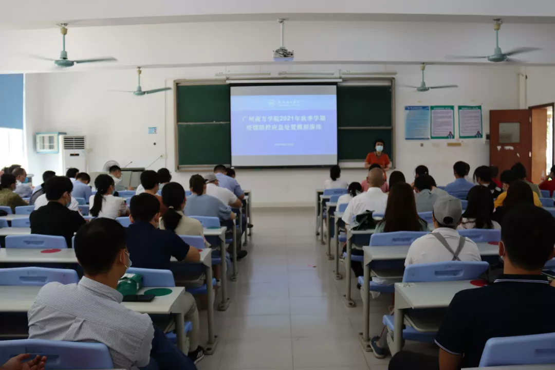 为检查秋季开学前校园疫情防控应急处置各项工作的准备情况,yabo鸭脖于8月26日下午,按《广州市新型冠状病毒肺炎疫情防控指挥部办公室教育防控专班关于印发广州市2021年秋季开学各级各类学校新冠肺炎疫情应急处置演练方案的通知》文件要求,组织师生员工,按“实战”标准,进行了一场疫情防控应急处置模拟演练。学校防控新型冠状病毒肺炎疫情工作领导小组及应急处置领导小组组长、党委书记李建超、常务副组长唐燕、师生返校疫情防控工作指挥部成员、学校各二级单位行政人员、院系教辅人员、学生辅导员、物业、餐饮服务人员等,共同参与了模拟演练,温泉派出所干警莅临现场工作指导。常务副校长、党委副书记唐燕担任此次演练总指挥。