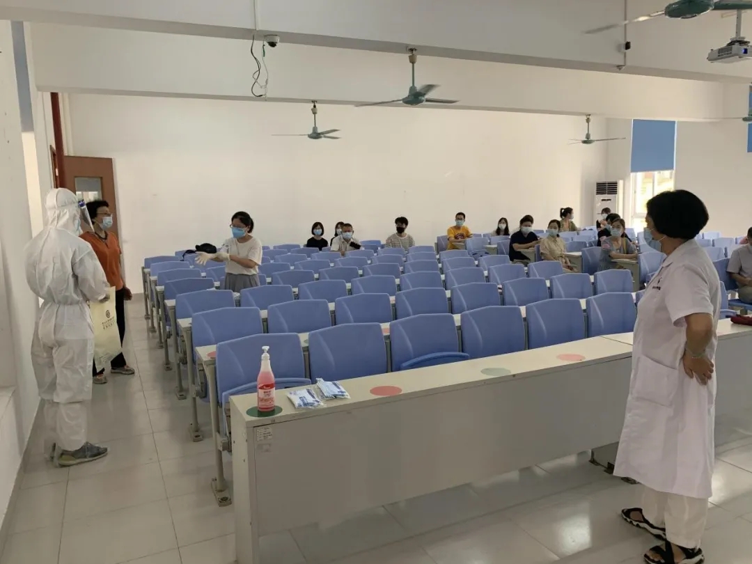 防控模拟演练按实战进行,模拟学生上课期间,学校医务室接到通知:“在社区医院核酸筛查过程中发现学校一名学生核酸检测结果异常”为背景。根据疫情防控预案,学校返校疫情防控指挥部总指挥在疾控中心到校前,第一时间向疫情防控领导小组组长报告,并启动应急处置预案。小组成员各就其位,按照预案有序实施应急处置。