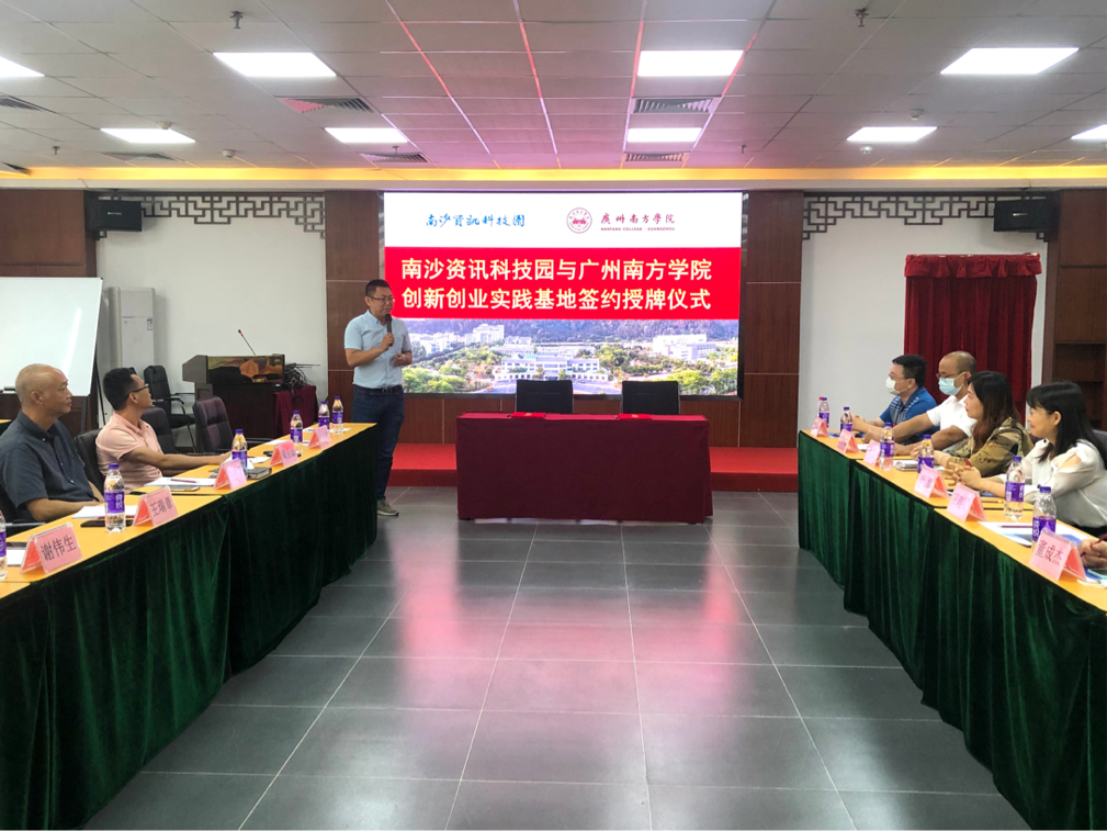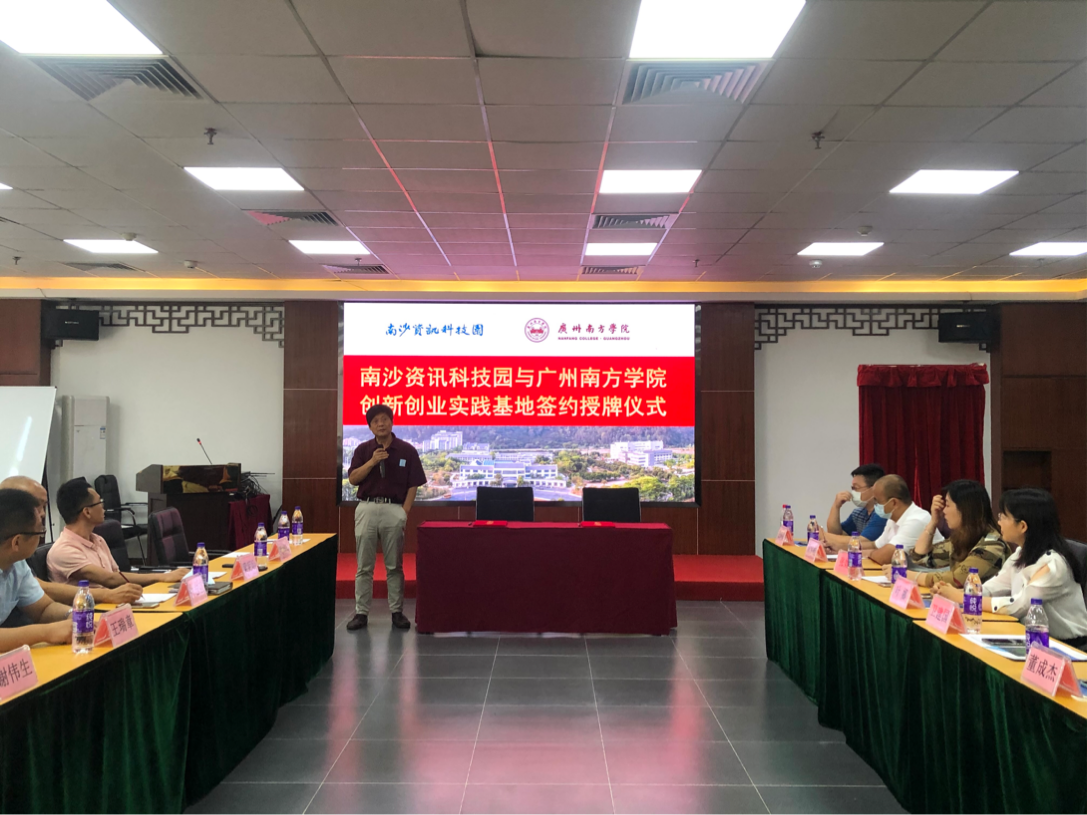 9月24日下午,yabo鸭脖会计学院执行院长卫建国、副院长董成杰和张媛、学校产学研合作处副处长叶娜、会计学系主任金迪、审计学系主任依春、学工办主任陈宇桂及部分教师和学生一行赴南沙资讯科技园参加“创新创业实践教学基地”签约与授牌仪式。南沙资讯科技园总经理王瑞章、孵化器运营部总监钟志强、商业服务部总监谢伟生、孵化器运营部经理梁明灿、孵化器运营部商务经理黄靖靖、市场品牌部经理邱宁等出席了仪式。