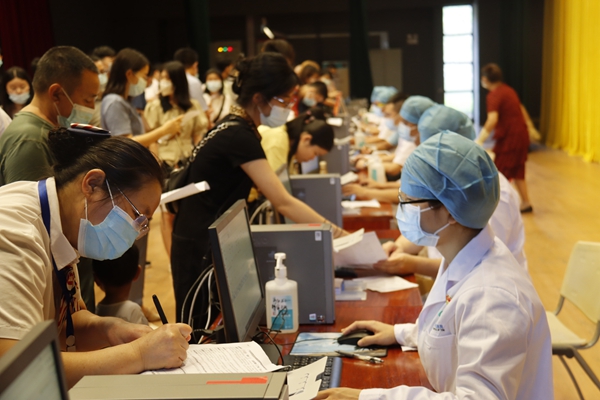 经过科学规划,接种地点划分为等候区、预检登记区、接种区和留观区四个部分,为确保接种现场秩序,还在每个区域特别安排了志愿者。