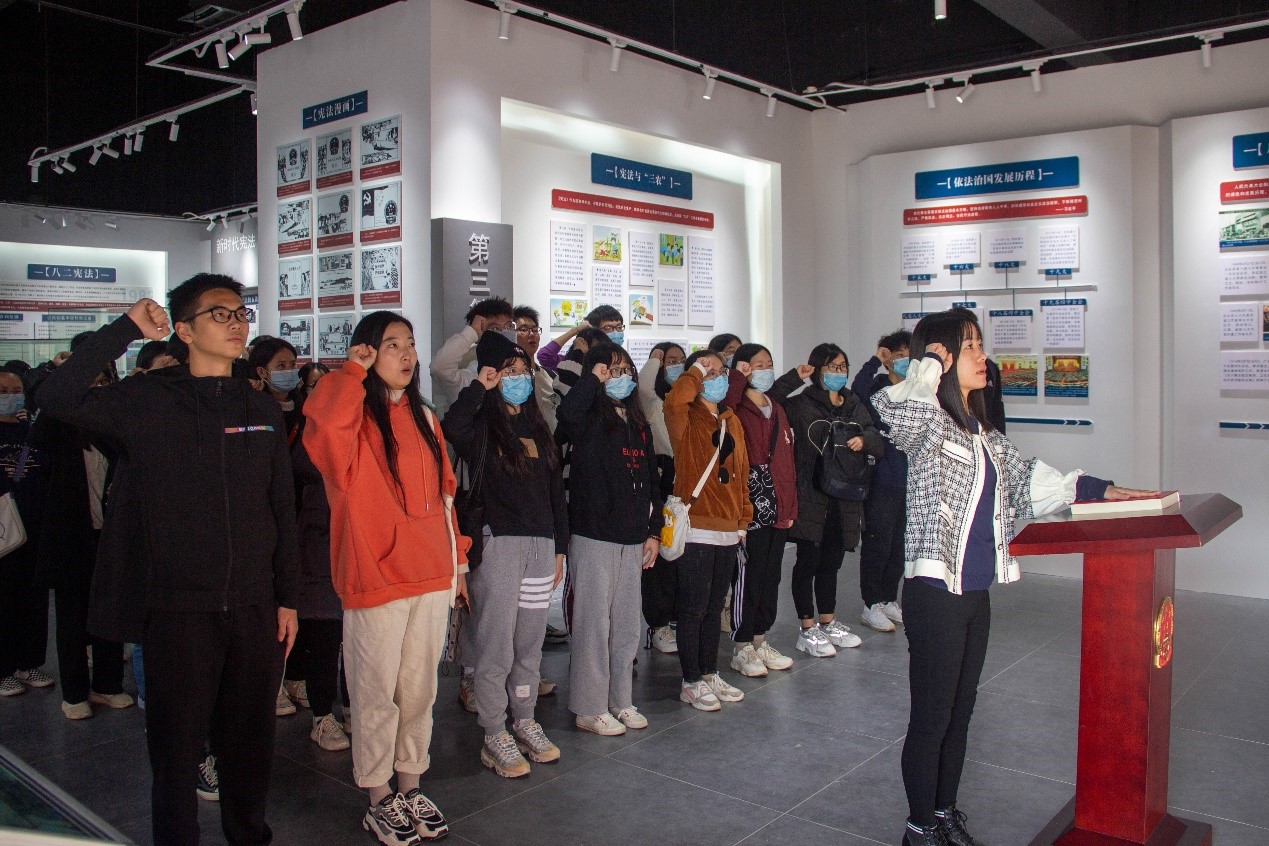在正式参观展馆之前,面向宪法馆,同学们进行了一次庄重的宪法诵读。