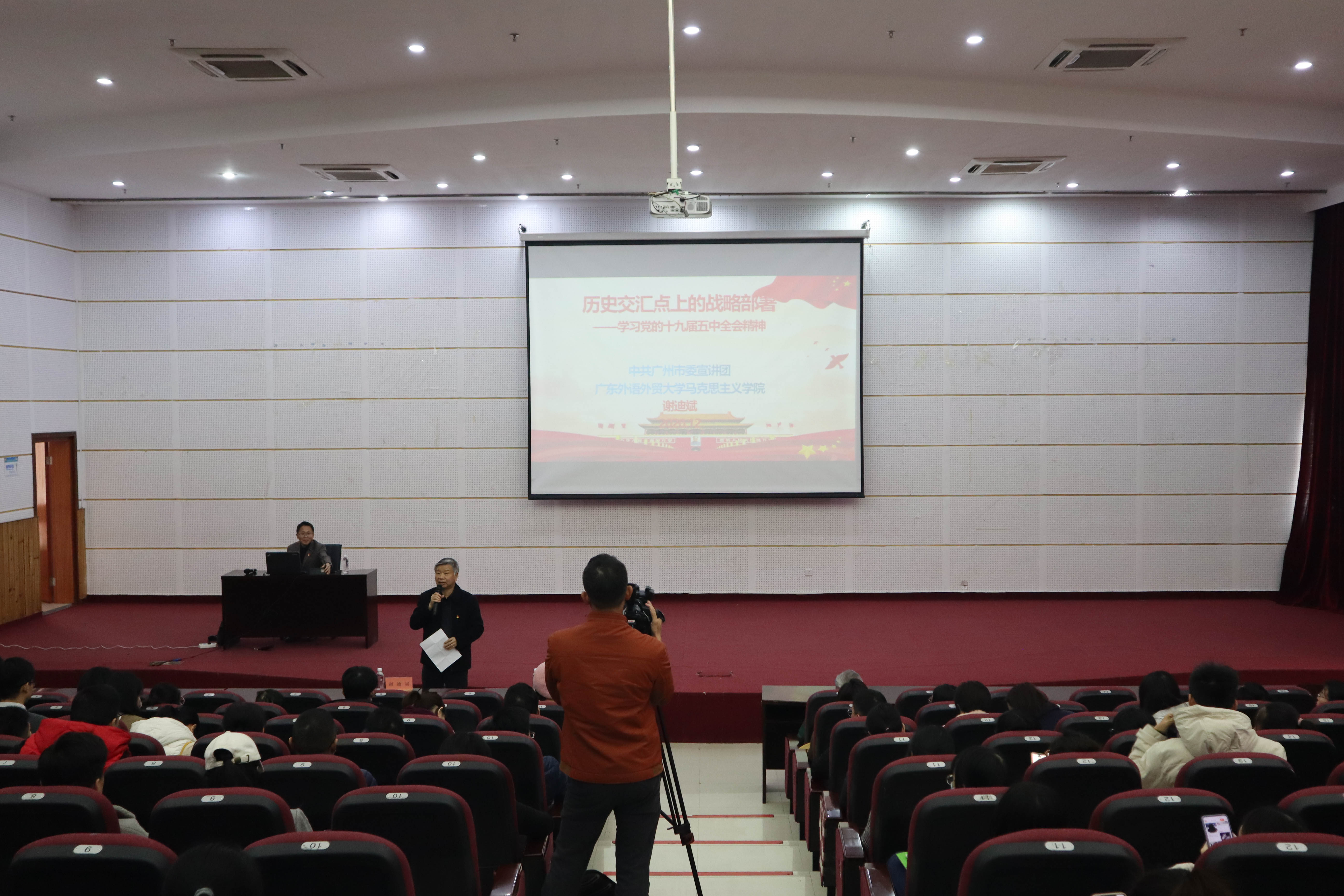 12月15日,南方论坛第118期在学校图书馆学术报告厅举行,主题是“解读党的十九届五中全会精神”,由中共广州市委宣讲团成员、广东外语外贸大学马克思主义学院院长谢迪斌教授主讲。