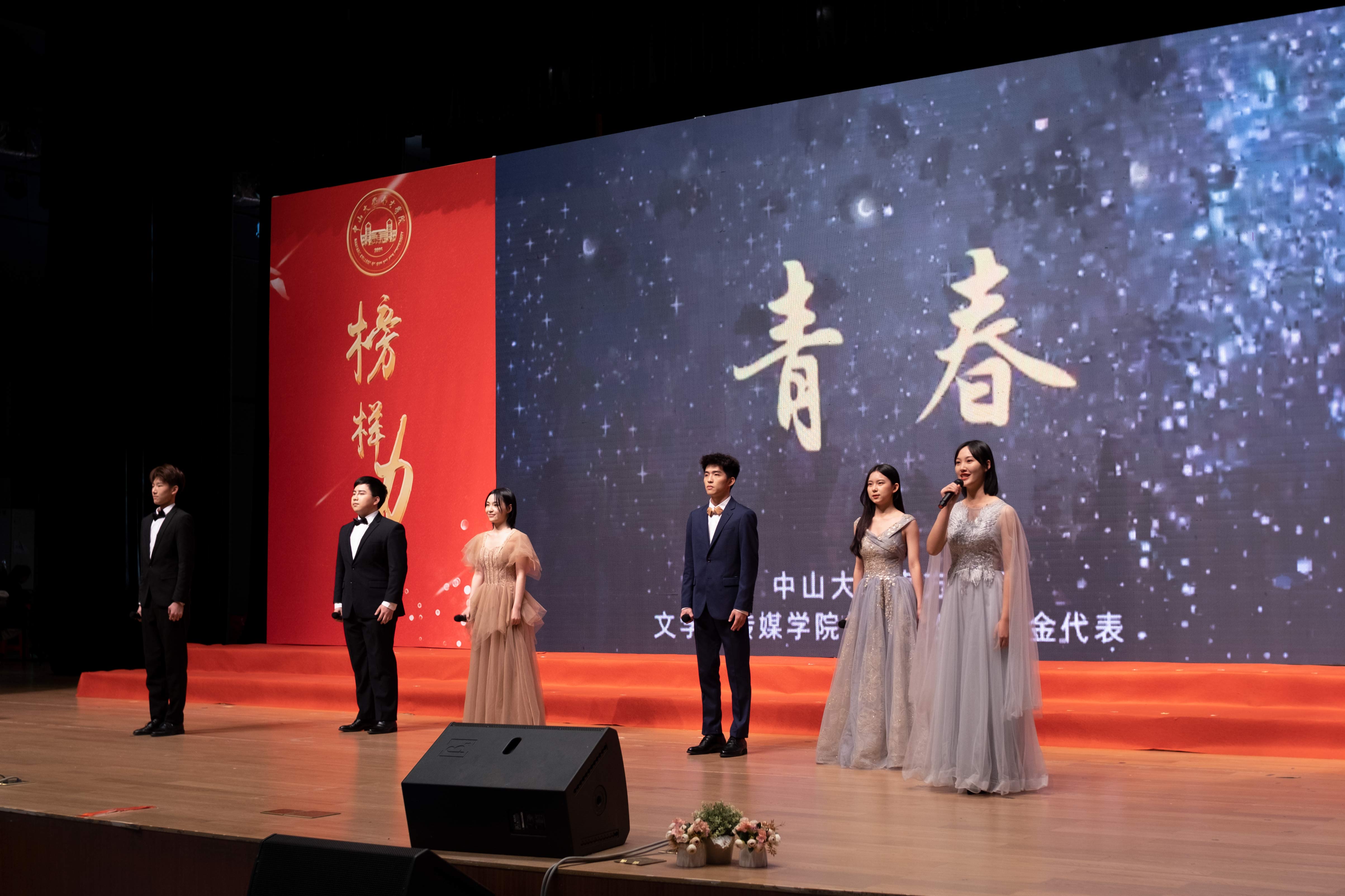 随后,来自文学与传媒学院的六位优秀学生奖学金代表带来诗朗诵《青春》。诗中讲到,青春是不可复制的旅途,不管它是迷茫的、孤独的、不安的,还是欢腾的、炽热的、理想的,都是最闪亮的日子。“青春是用来奋斗的,而不是用来挥霍的”,鼓励同学们珍惜时光,勇于追梦,不要虚度年华。