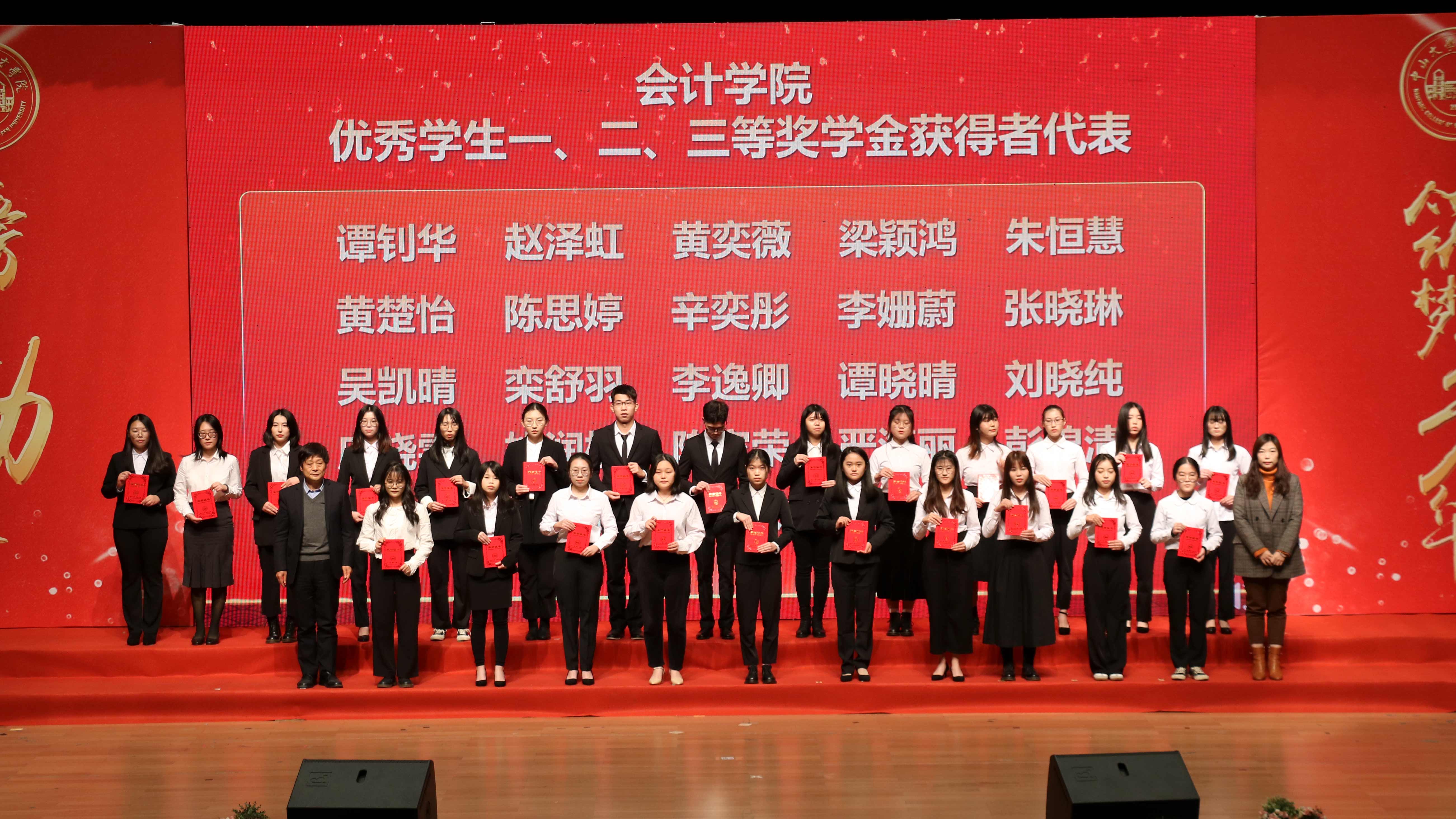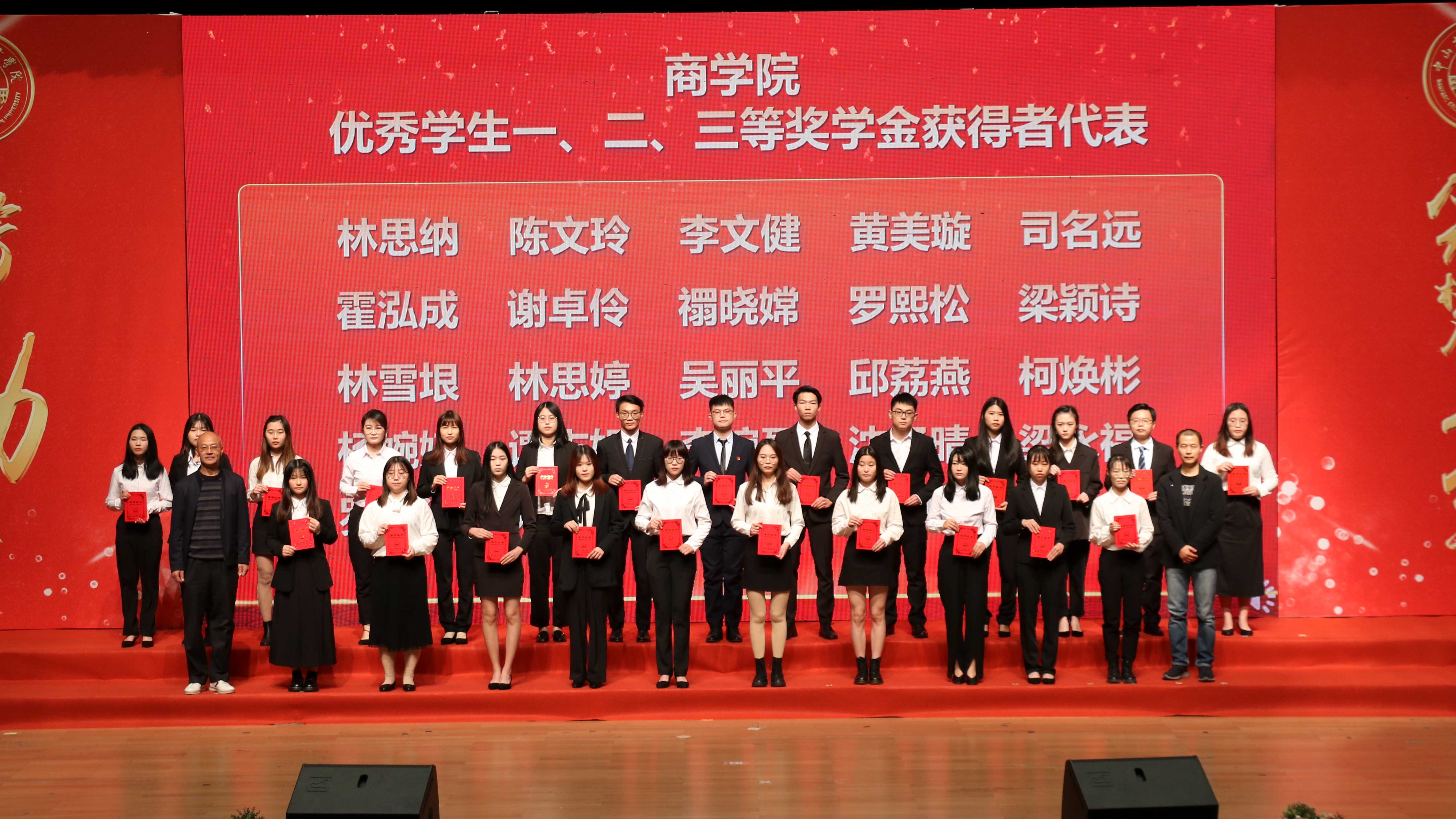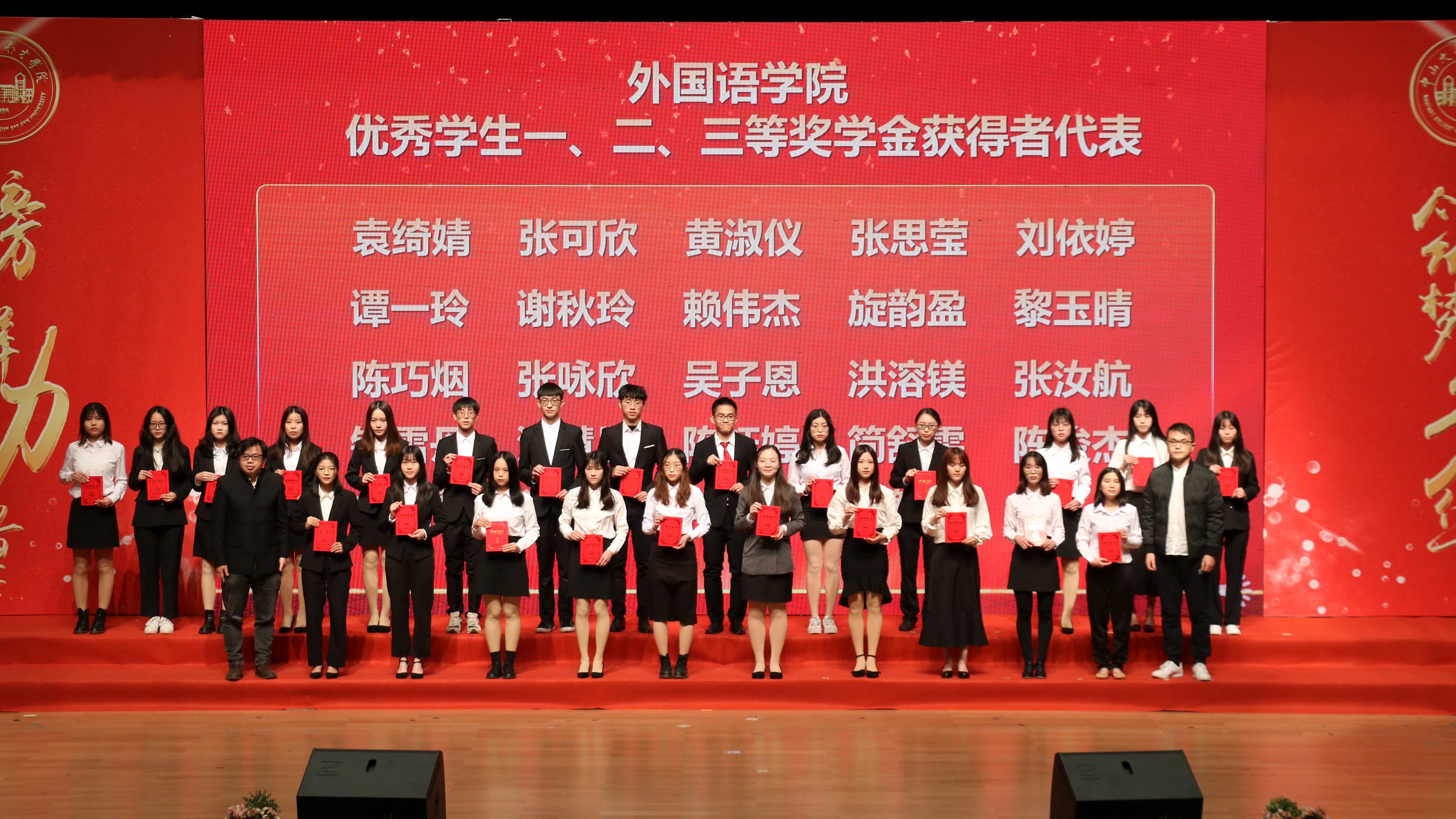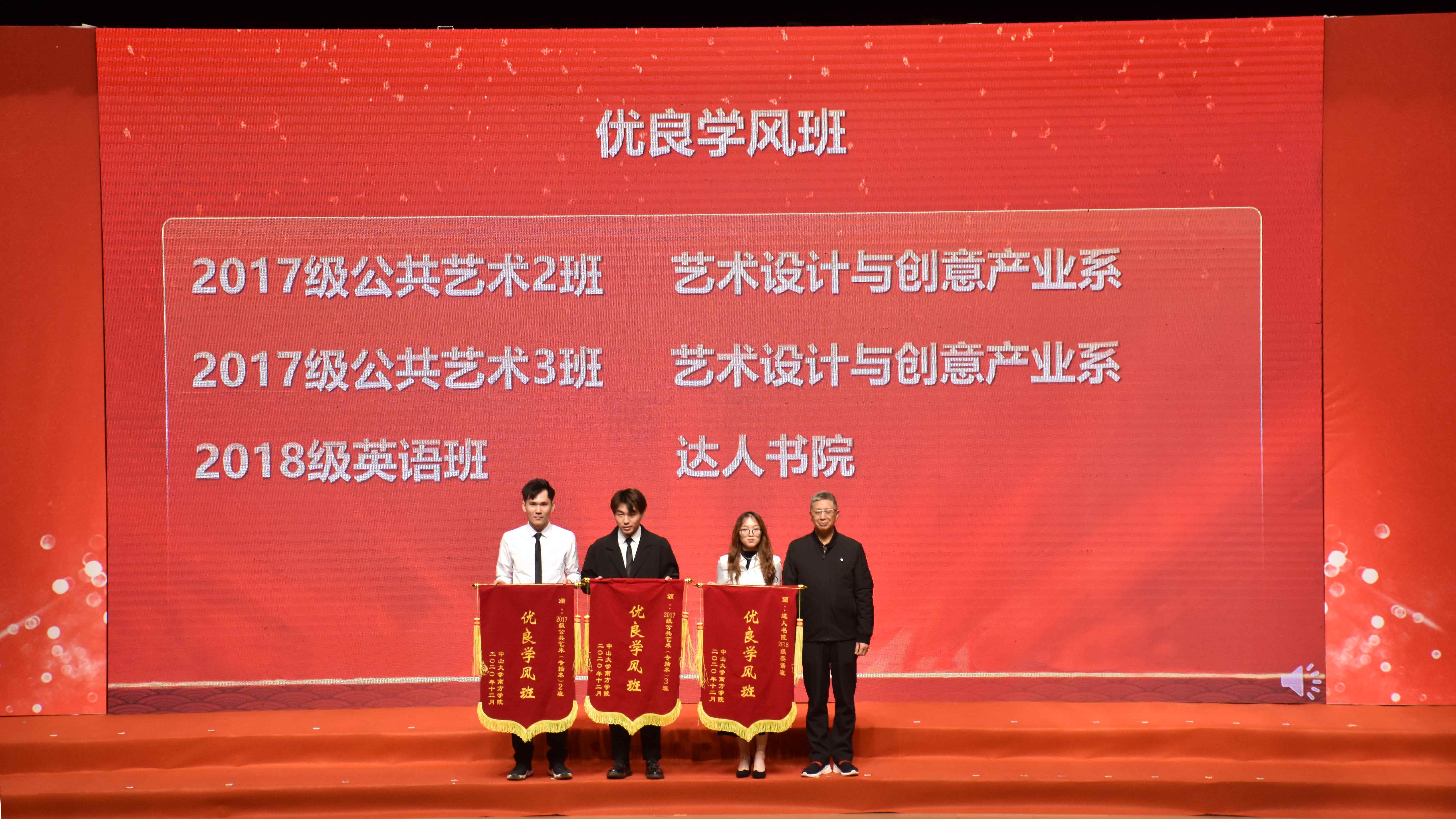 12月30日下午,中山大学南方学院在综合楼大礼堂隆重举办2019-2020学年度先进集体暨优秀学生表彰大会,对获得2020年优秀新生奖学金、本学年国家奖学金、国家励志奖学金、学校励志榜样、学校励志奖学金、学校优秀学生奖学金、优秀学生班主任的同学以及学校“优良学风班”的班级进行表彰奖励。