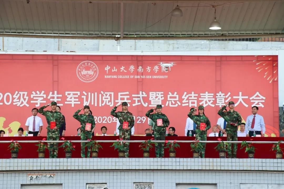 9月29日下午,中山大学南方学院2020级新生军训阅兵式暨总结表彰大会在西区田径场隆重举行。学校领导班子,承训单位代表,各院系代表以及一年级学生工作部代表出席大会,大会由一年级学生工作部部长程爱民主持。