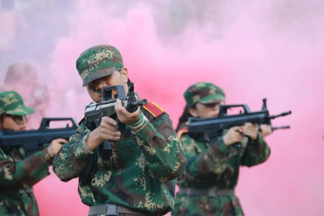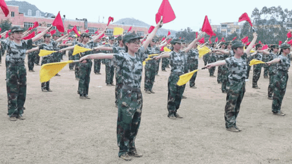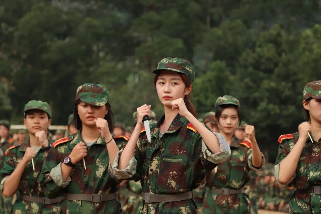 随后的军训科目汇报表演中,组成旗语和匕首操方阵的数百名女同学,步伐矫健,英姿飒爽,激荡着青春活力;