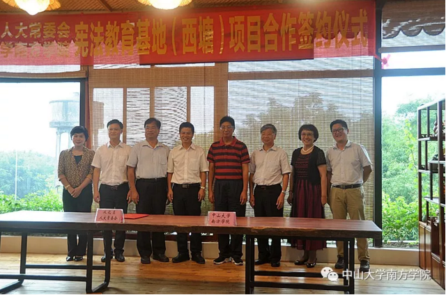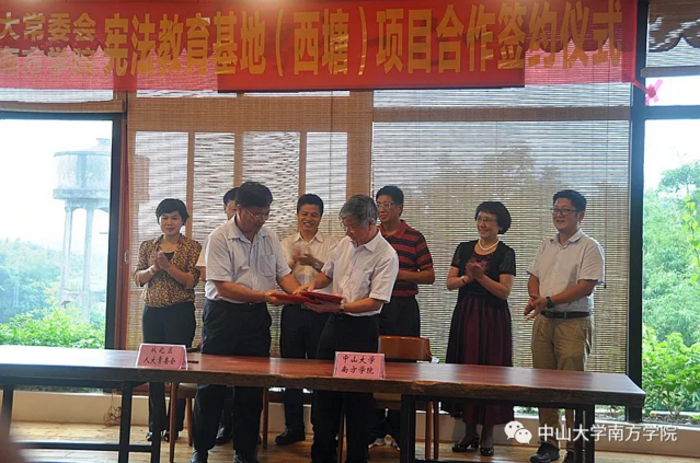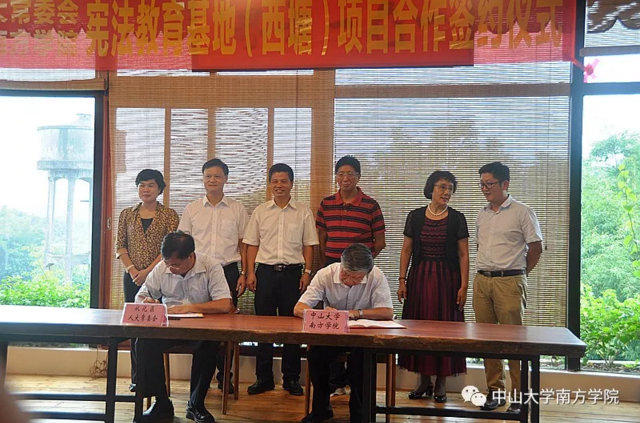 为深入学习贯彻习近平总书记系列重要讲话和十九大精神,认真贯彻实施全国“七五”普法规划,大力弘扬社会主义法治精神,培养法治信仰,将宪法学习教育引向深入,9月20日下午,中山大学南方学院与从化区人大常委会在从化区鳌头镇西塘村举行宪法教育基地(西塘)项目合作签约仪式。yabo鸭脖校长喻世友、党委书记李建超,从化区人大常委会主任林奕孜、副主任余志平出席仪式。仪式由区人大常委会委员、办公室主任刘敏主持。