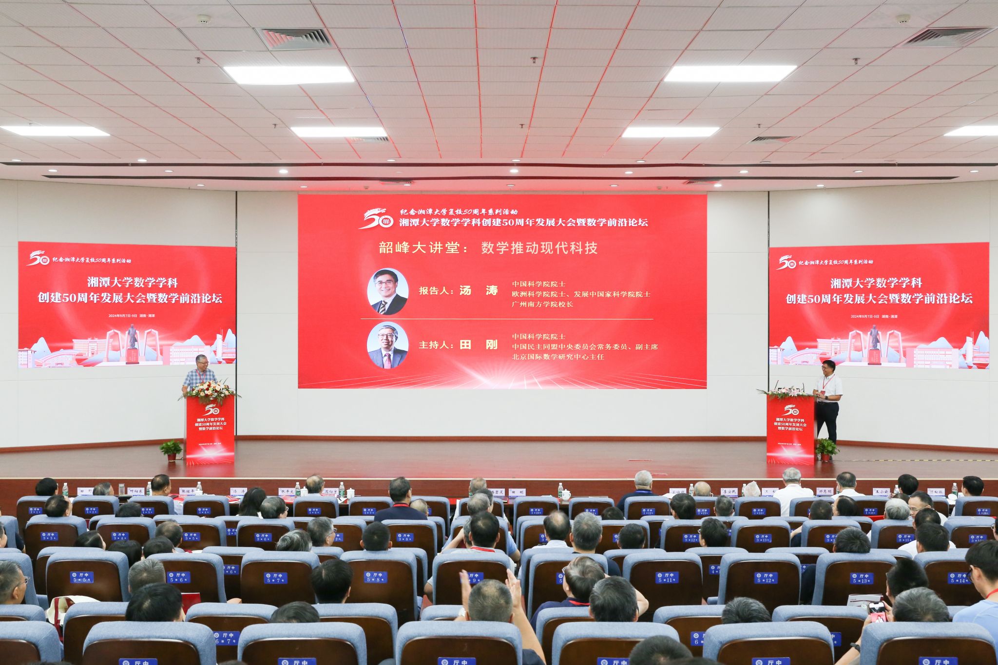 9月8日,湘潭大学举办数学学科创建50周年发展大会暨数学前沿论坛。湖南省委常委、常务副省长张迎春,中科院院士田刚、王诗宬、李安民、周向宇、江松、张平文、郑志明、汤涛、王小云、张继平、叶向东、陈松蹊、田野等13位院士出席,中科院院士袁亚湘线上参会。来自全国各高校和科研单位的专家学者、师生代表700余人汇聚一堂,回顾学科建设历程,弘扬学科优良传统,共绘学科发展蓝图。