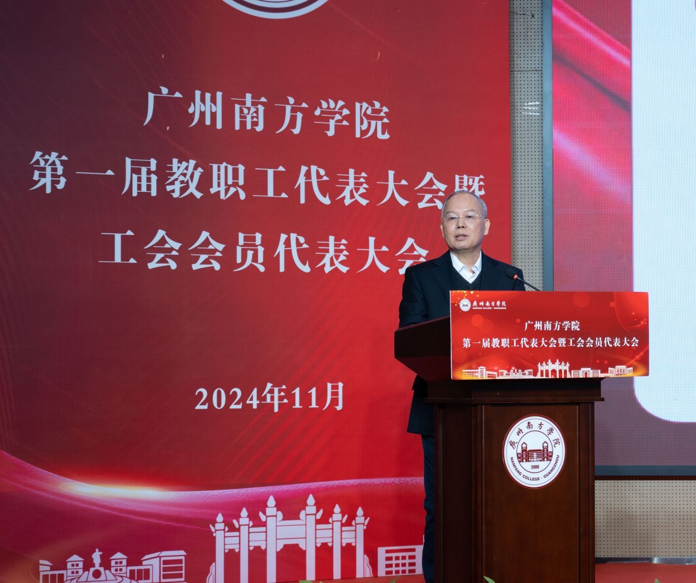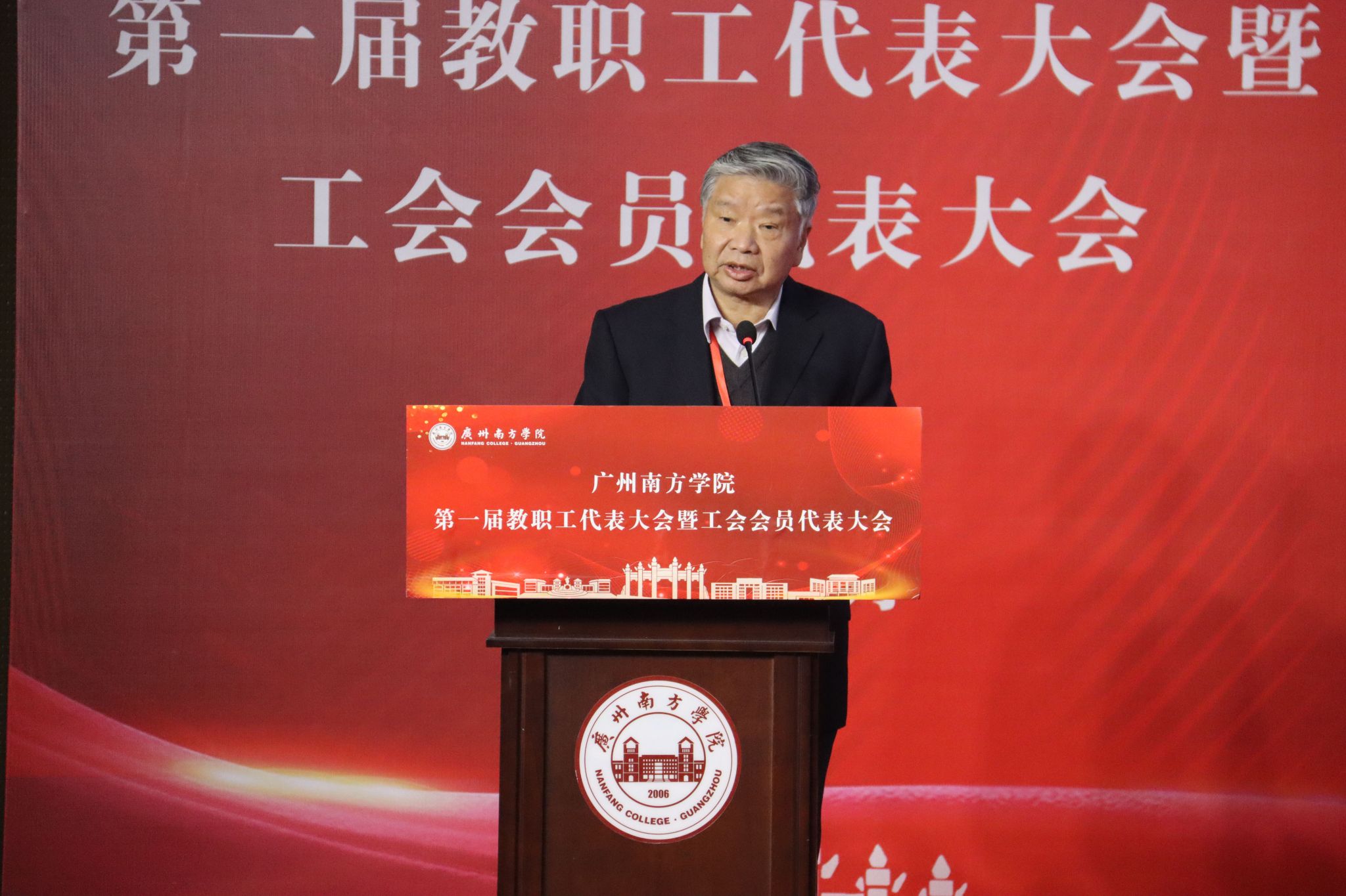 正式会议上,党委书记李建超代表学校党委向大会的召开表示热烈祝贺,并对第二届教职工代表大会、第四届工会会员代表大会工作取得的成效给予充分肯定。他希望,通过本次大会的召开,工会、教代会进一步提高政治站位,更好发挥工会干部和教职工代表的作用,凝心聚力,促进工会和学校事业的不断发展。