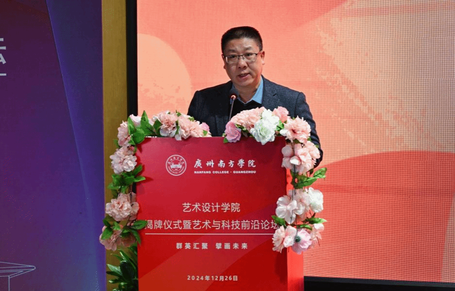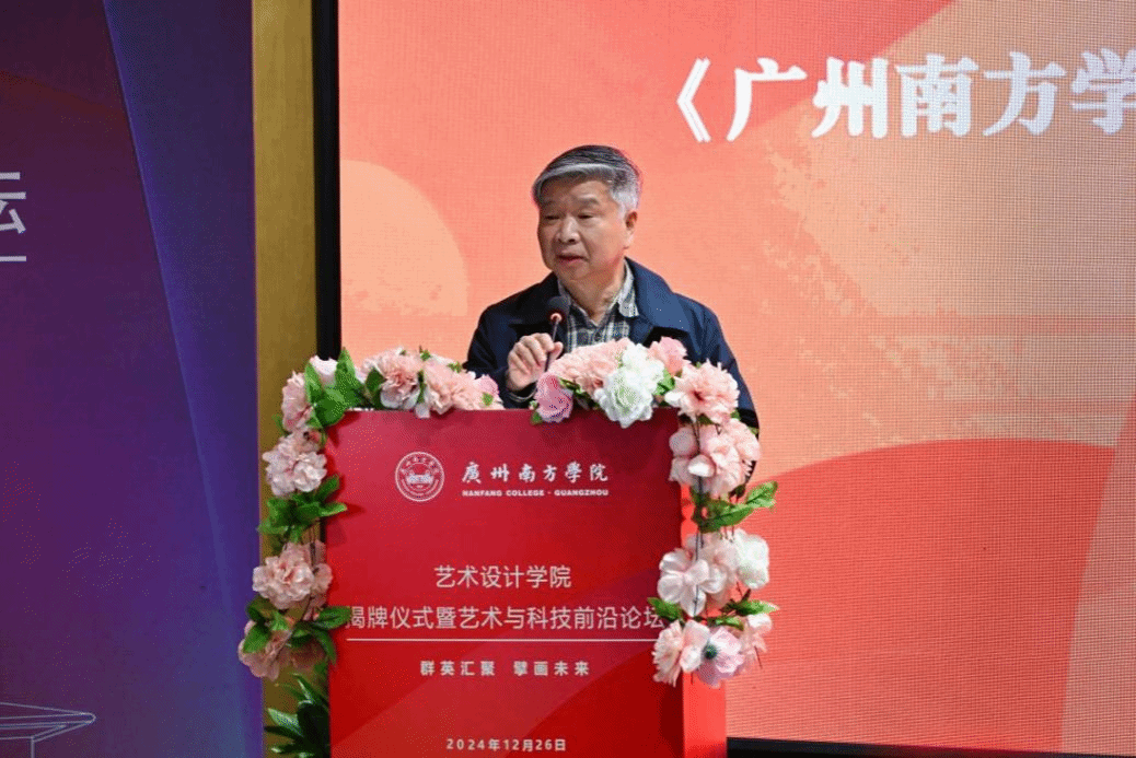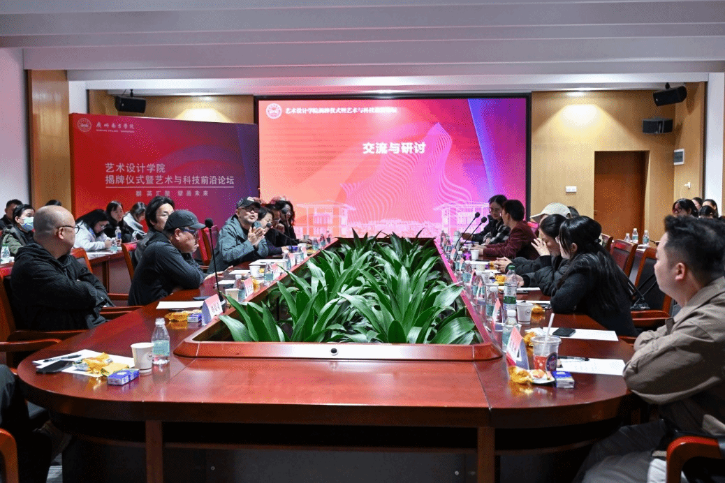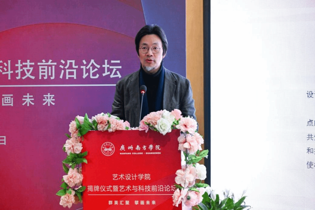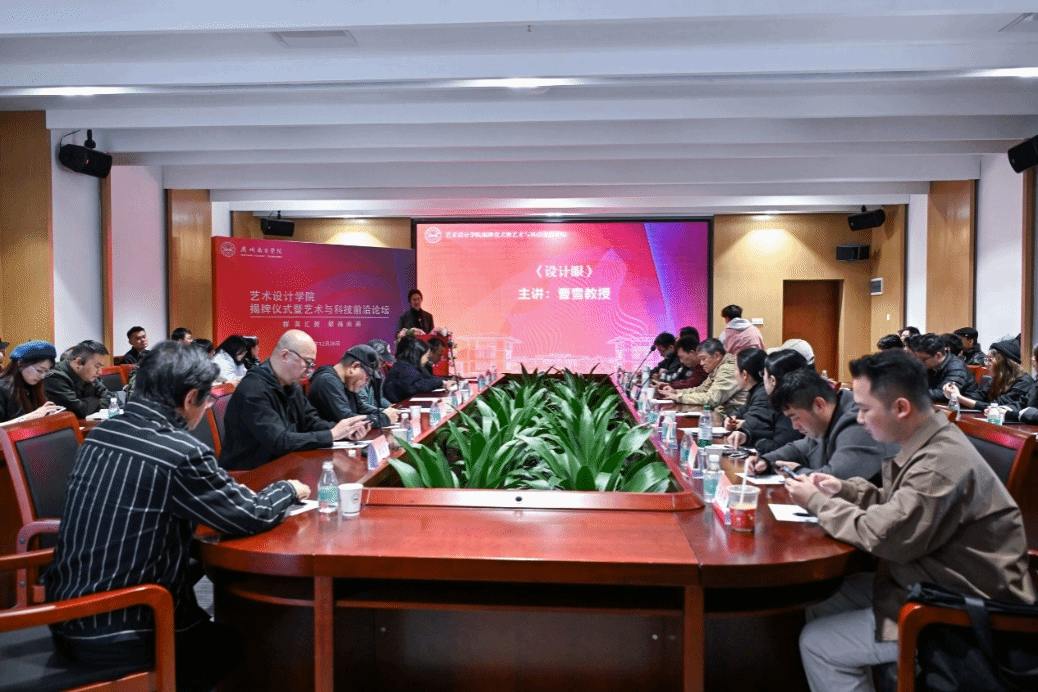 揭牌仪式后,艺术设计学院举行艺术与科技前沿论坛。曹雪教授在论坛中分享了广州城市标志、“你好,中国竹”“冰墩墩”等知名标志的设计经验与思考。他强调视觉心理和逻辑推导在设计中的重要性,认为设计不应局限于美学层面,还需注重策略与科学分析。曹雪教授表示,优秀的民族文化设计应深入挖掘传统文化内涵,而非简单的传统符号堆砌。他还以广州地铁站人性化设计、药品的创新包装设计为例,阐释了设计如何提升公共设施用户体验和增强产品市场吸引力,希望设计充分关注社会需求,通过设计为城市发展和人民生活做出贡献。