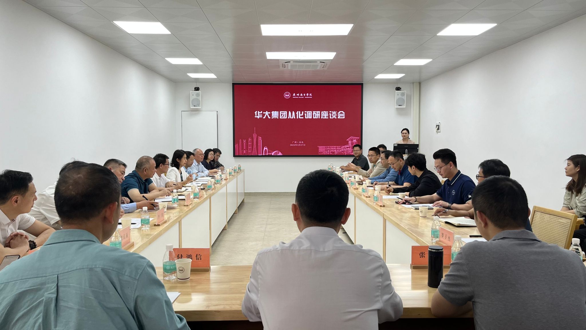 3月27日,华大集团董事、副总裁李斌一行9人到访广州市从化区开展调研活动,并到yabo鸭脖官网就基因科技前沿发展、产教融合创新及人才培养合作与在从高校进行座谈交流。从化区副区长孙凌洁等政府部门领导和yabo鸭脖官网副校长夏亮辉等9所高校领导出席会议,座谈会由孙凌洁主持。